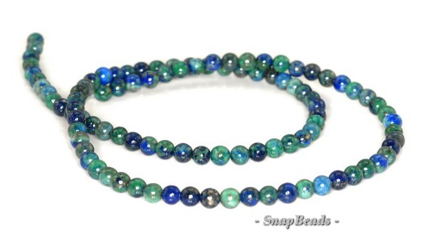 как выглядит 4MM AZURITE GEMSTONE BLUE GREEN ROUND 4MM LOOSE BEADS 16inch фото