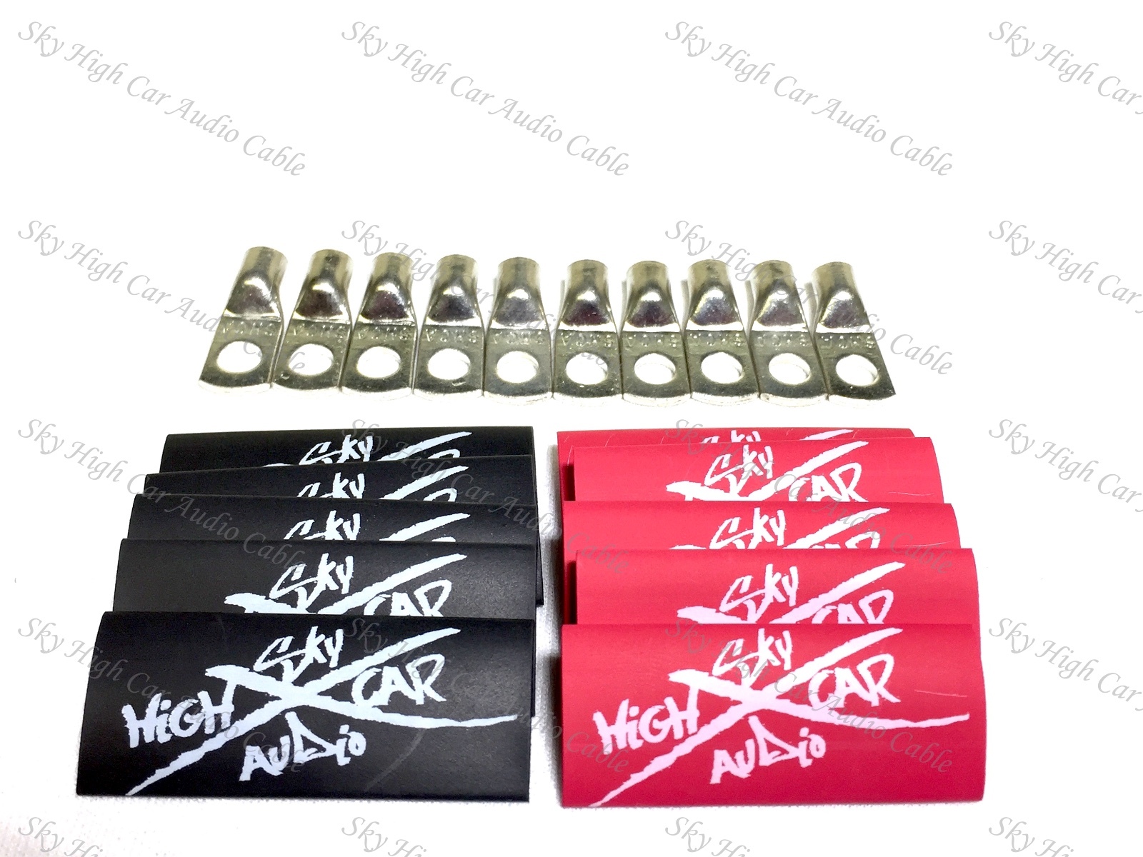 10 8 Gauge TINNED Copper Ring Terminals 1/4 RED/BK Heat Shrink Tubing LUG