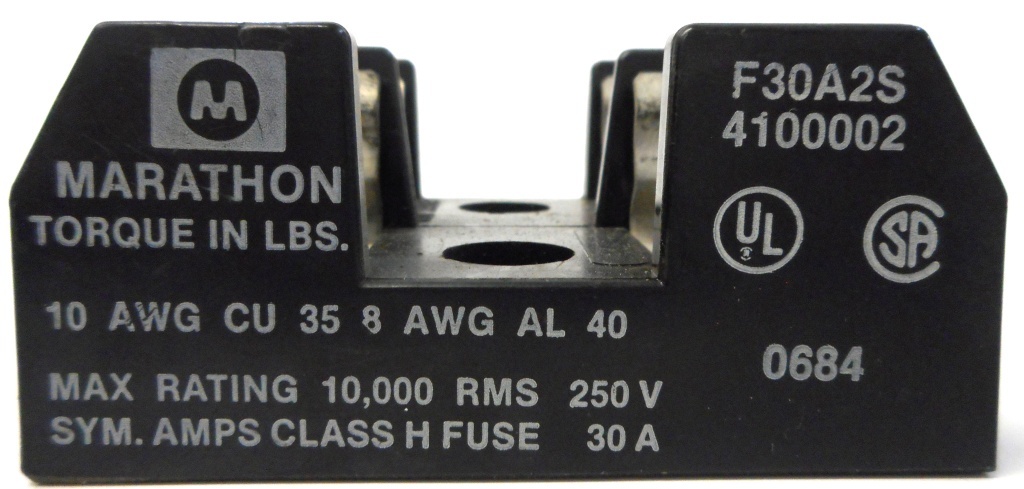 MARATHON ELECTRIC FUSE HOLDER, F30A2S, 4100002, 250 VOLTS, 30 AMPS