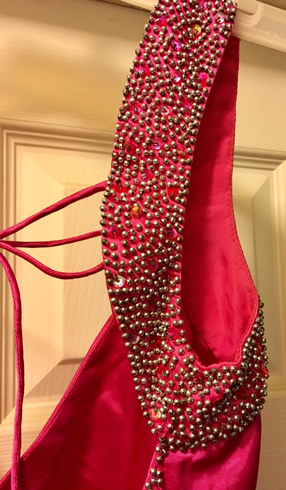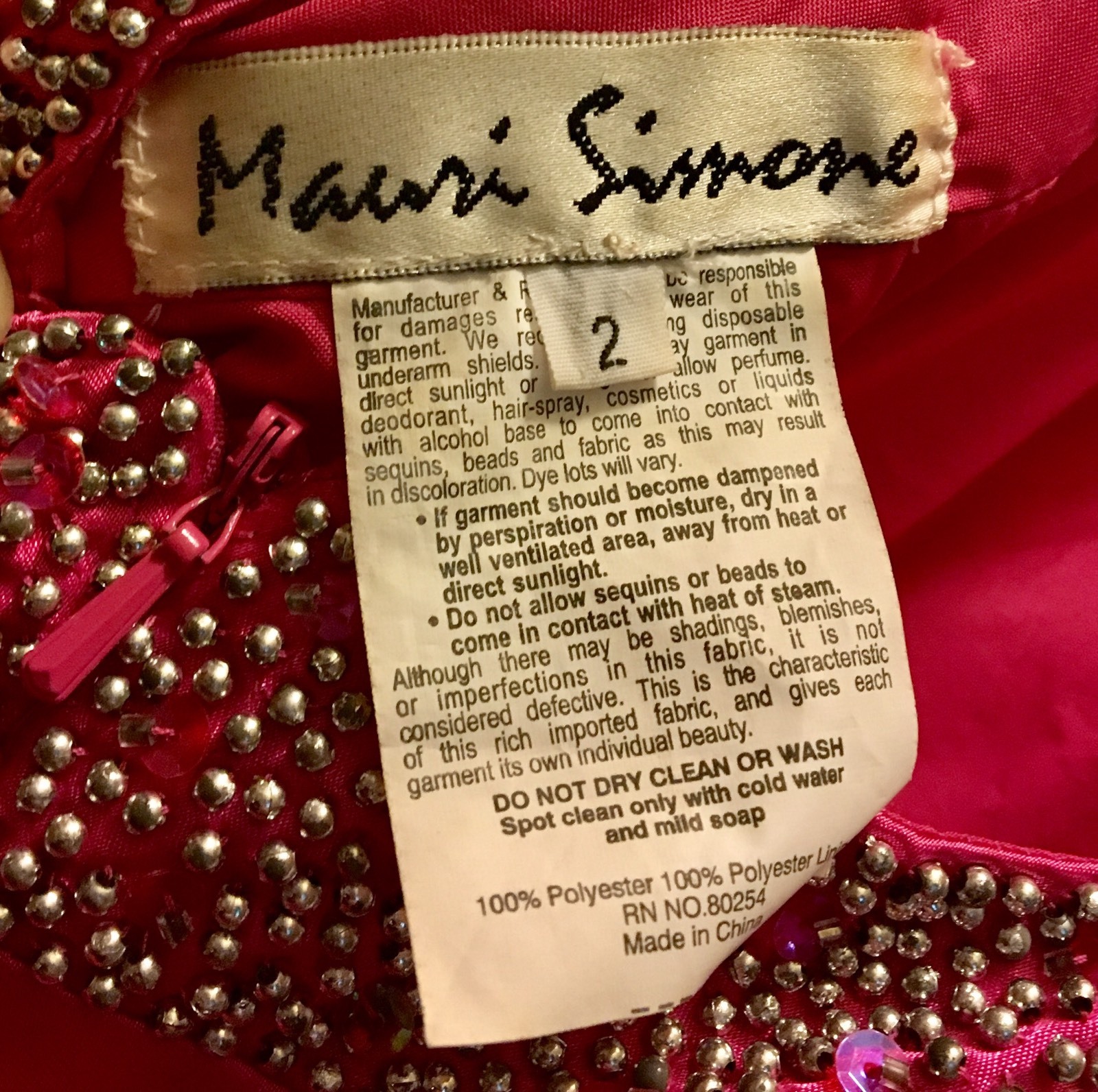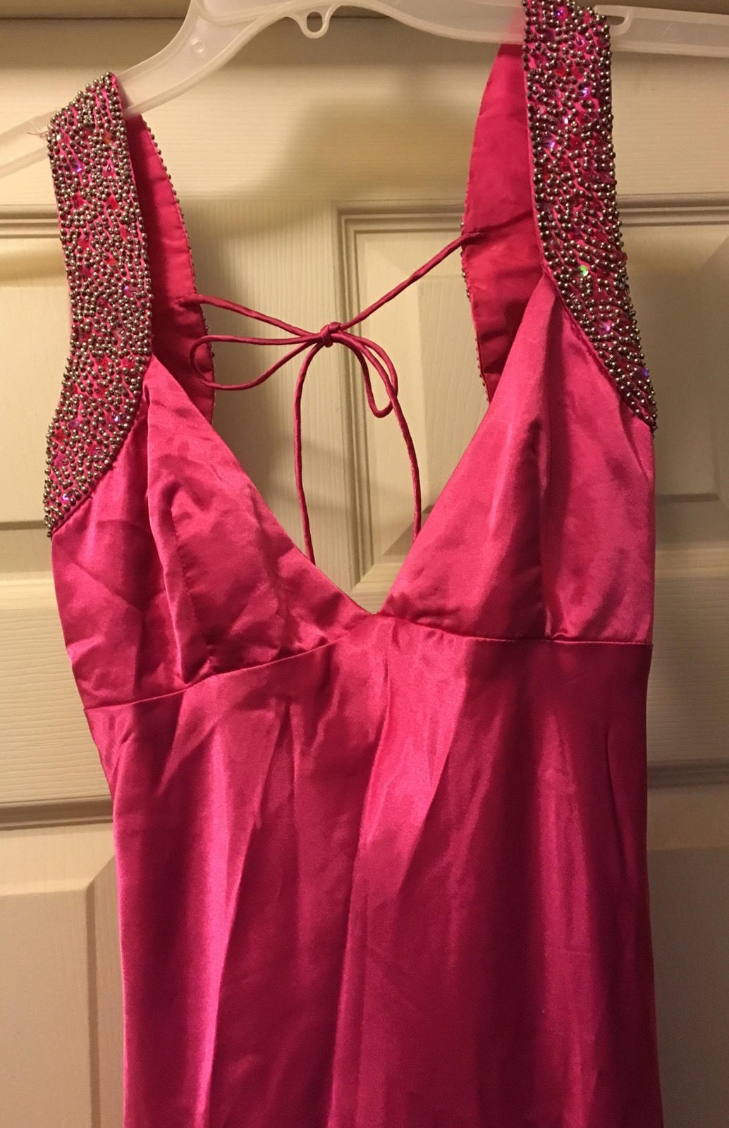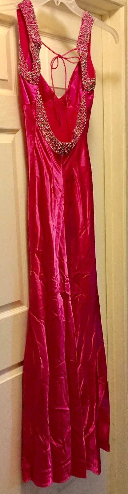 Mauri Simone Prom Formal Evening Gown Hot Pink Studded Bling Size 2