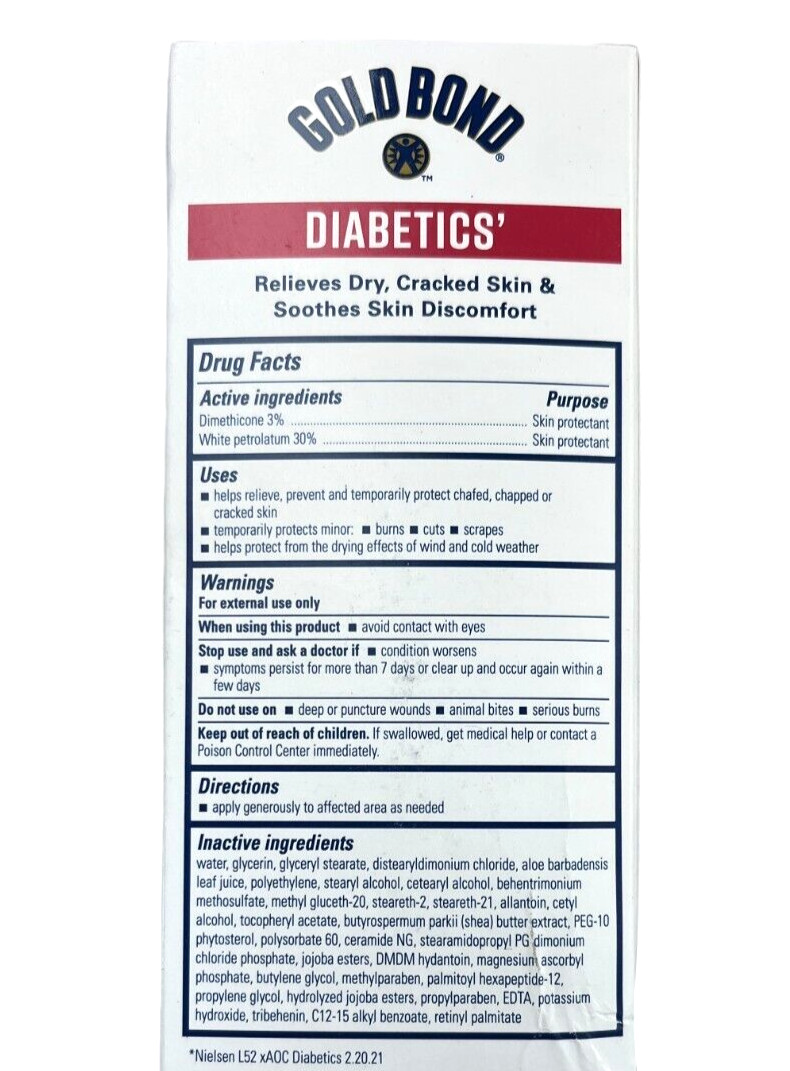 Gold Bond Diabetic Skin Relief FOOT Cream, 3.4 oz 2 pack box may vary