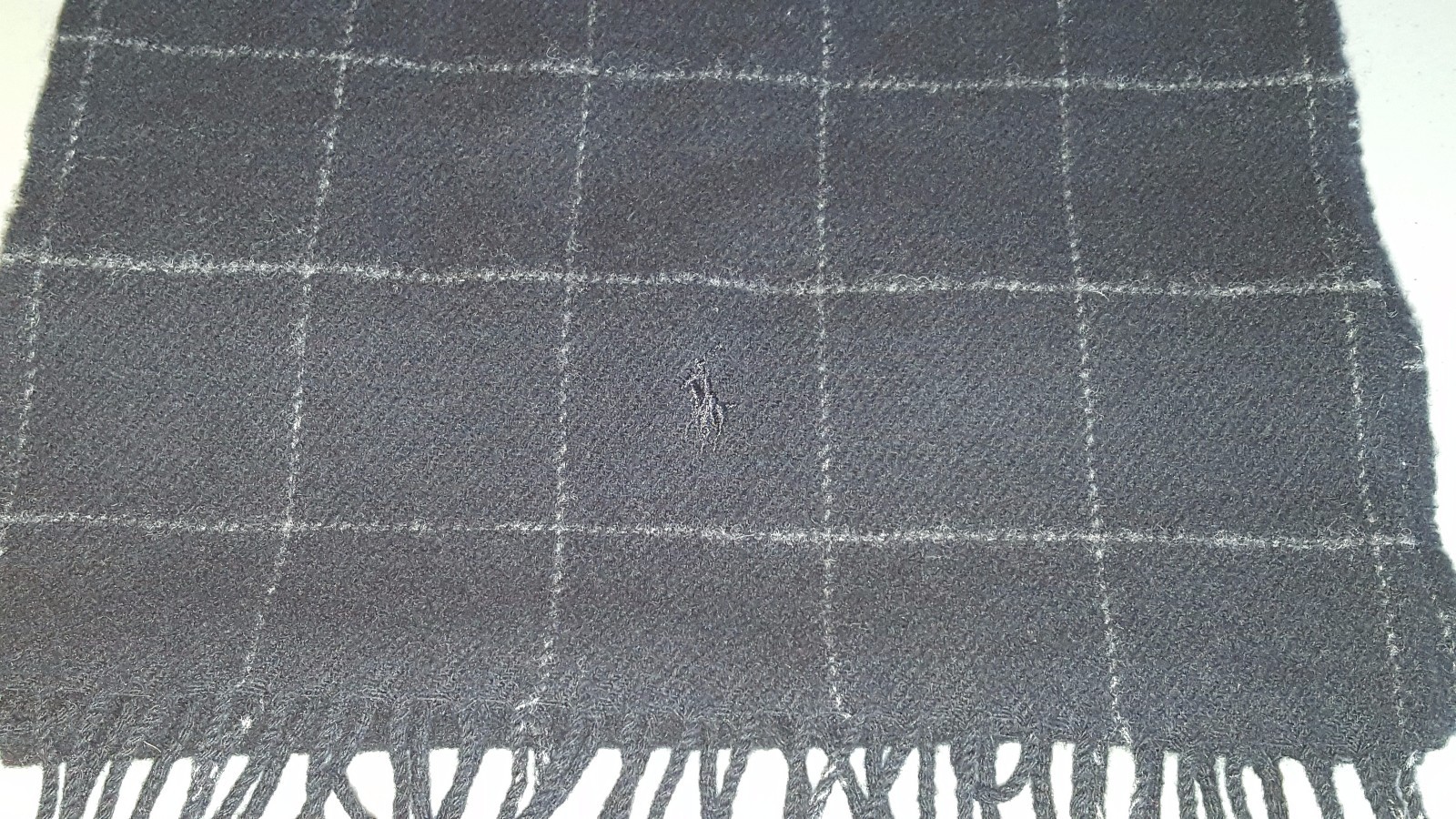 как выглядит Polo Ralph Lauren 100 lambswool fringe scarf black gray made in Scotland фото