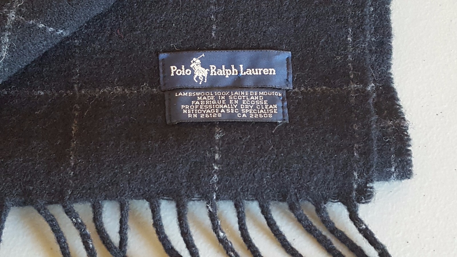 Polo Ralph Lauren 100 lambswool fringe scarf black gray made in Scotland