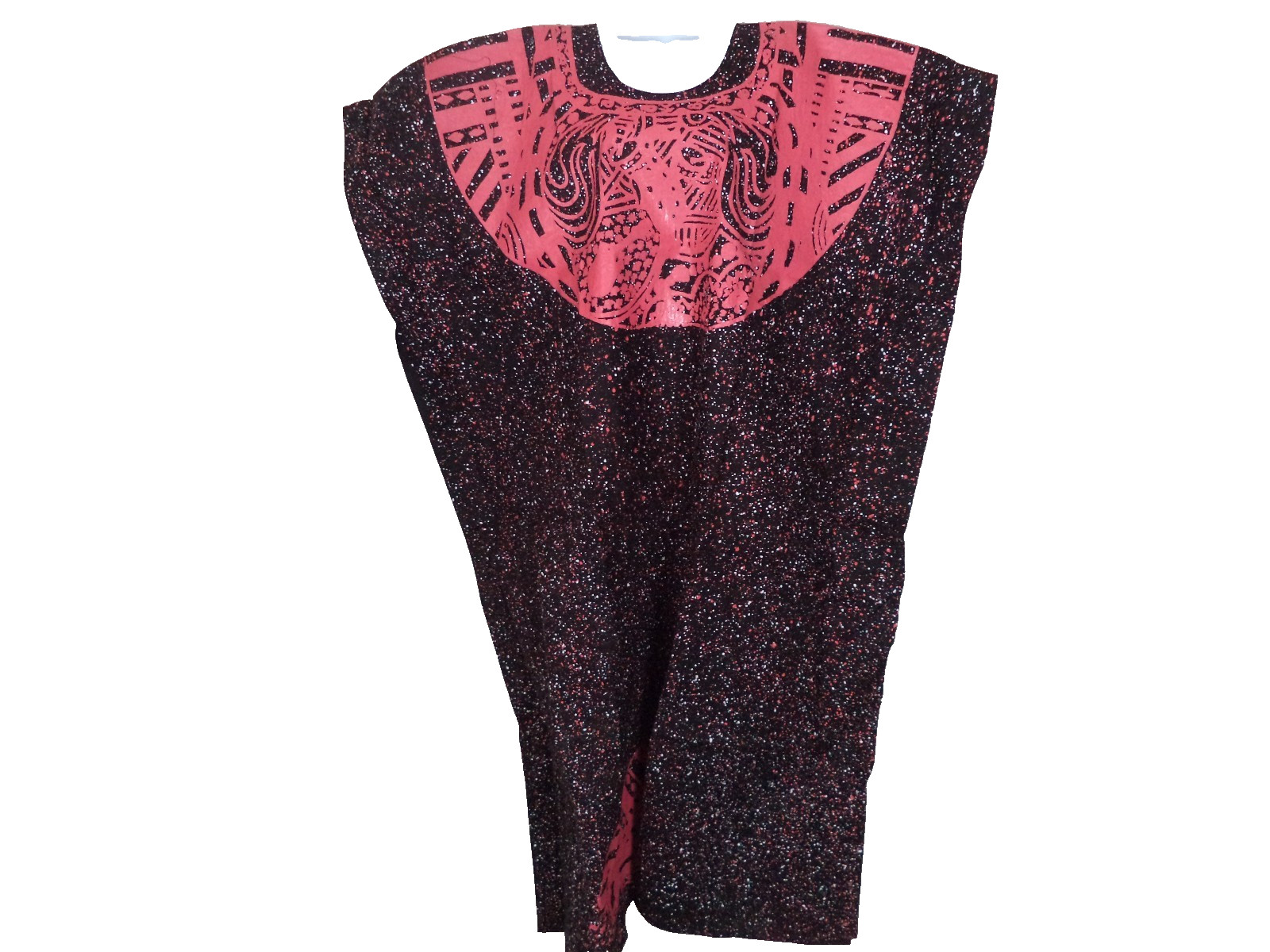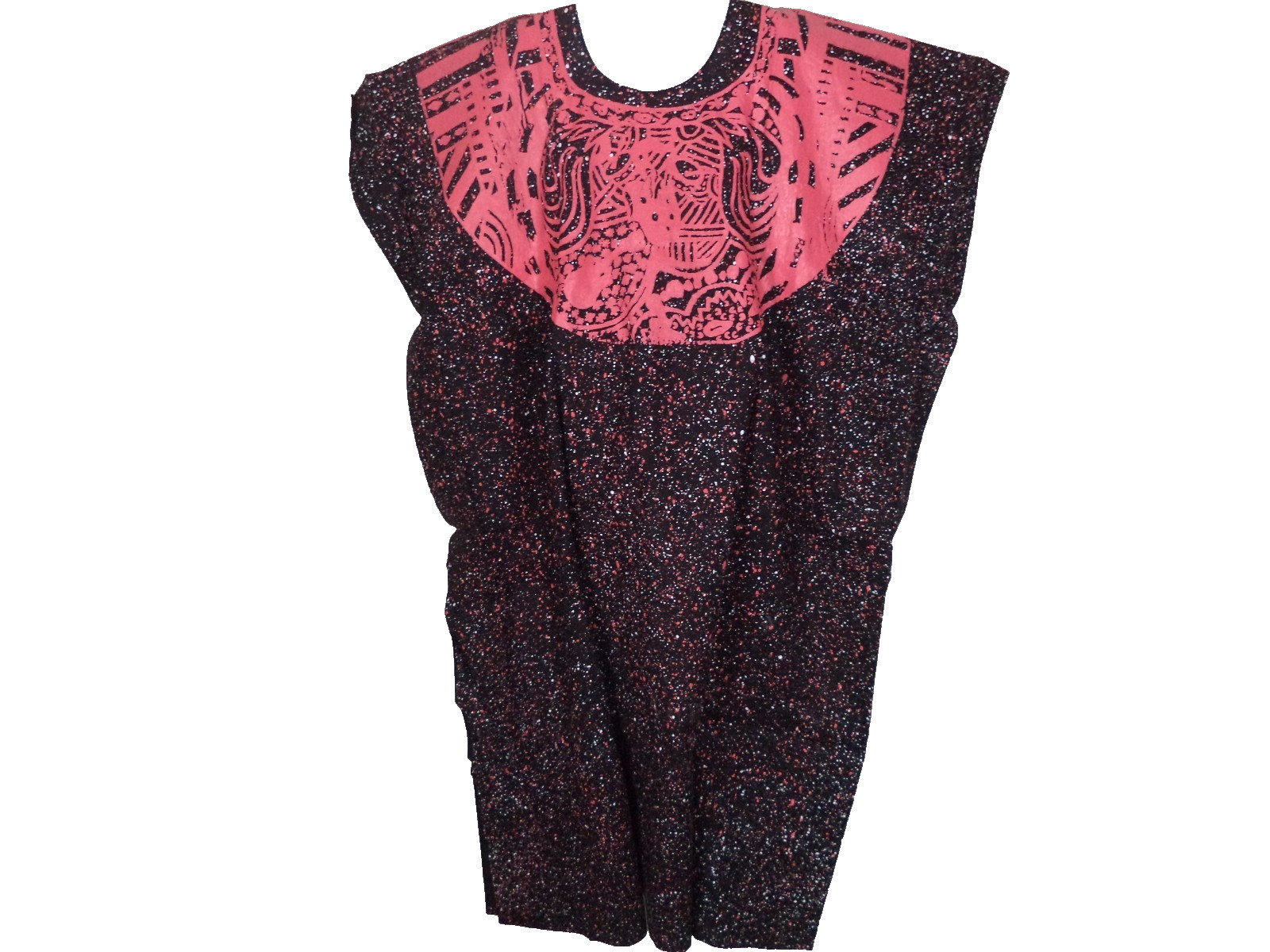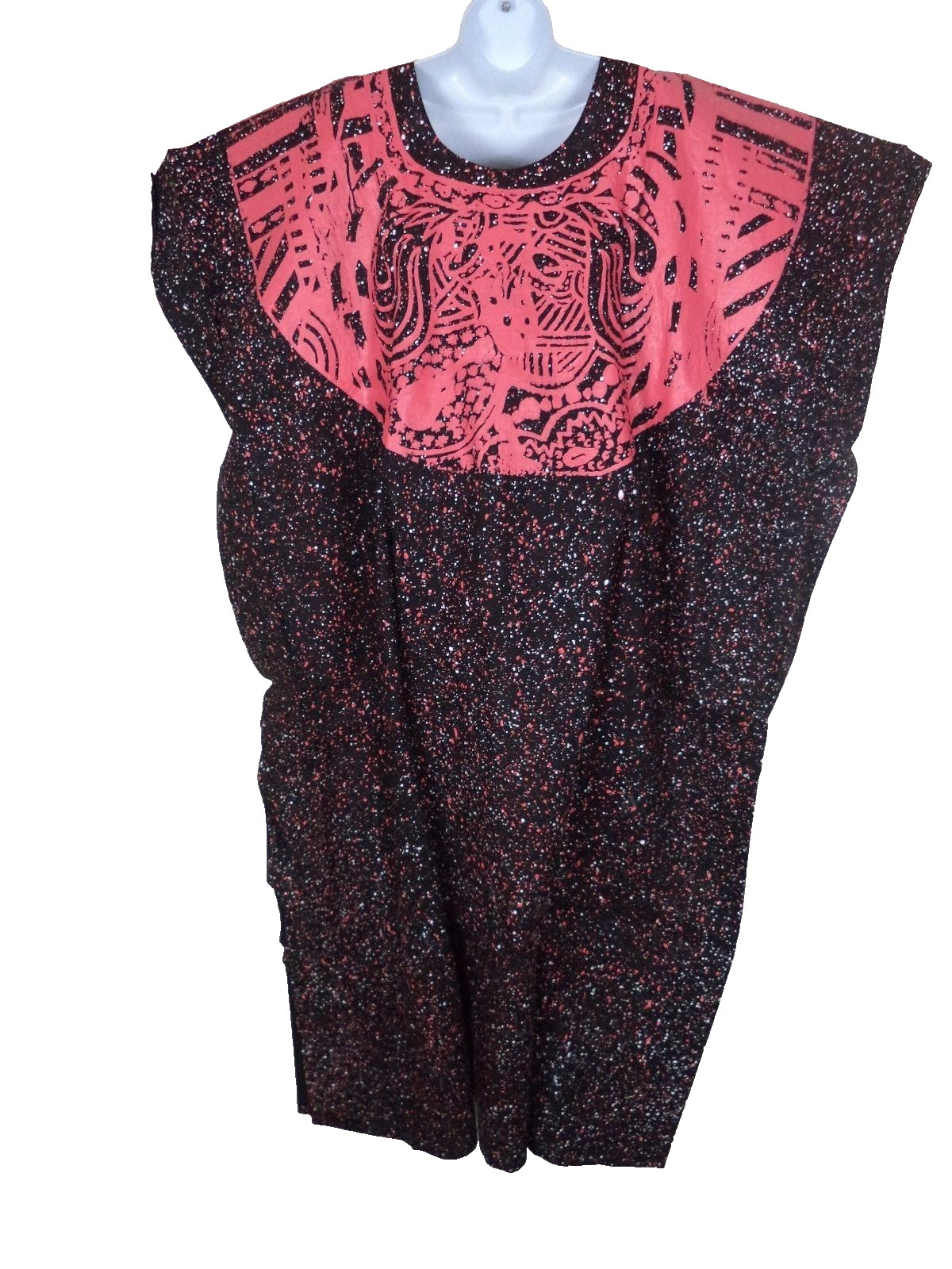 Women's Dark Pink On Black Handmade African Traditional Bubu Dress. OSFA.