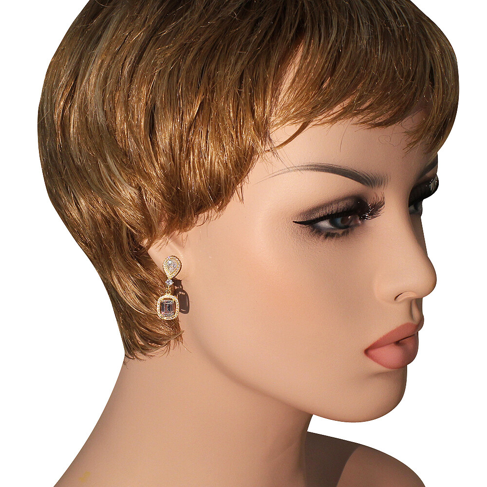 как выглядит 925 Sterling Silver Yellow Gold-Tone Rectangular Teardrop CZ Dangle Earrings фото