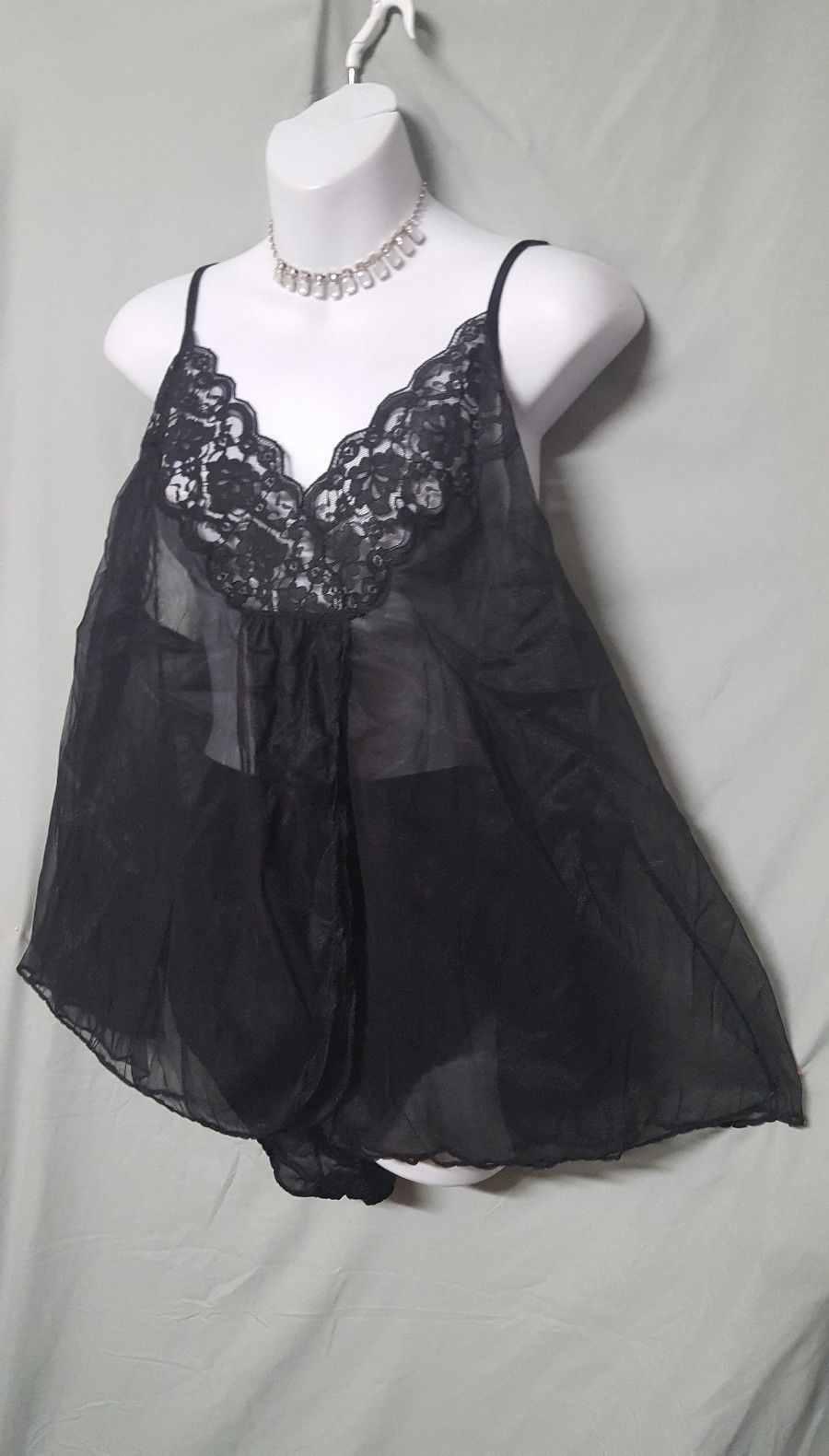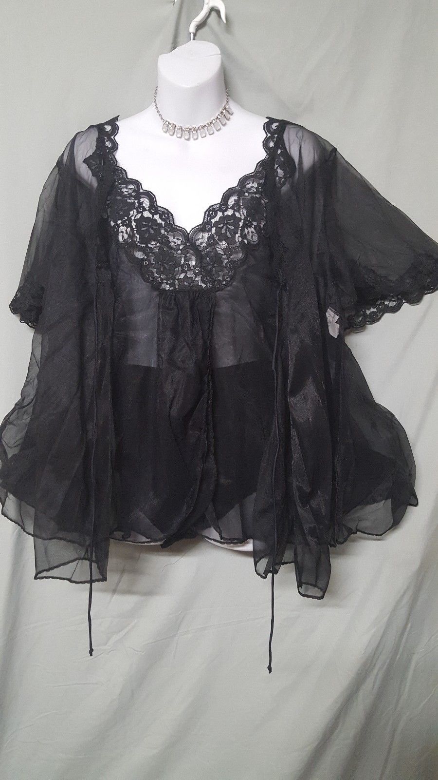 VTG Style Chiffon Black Babydoll Nightgown Ventura 3 Piece 1x 2x 3x 4x 5x