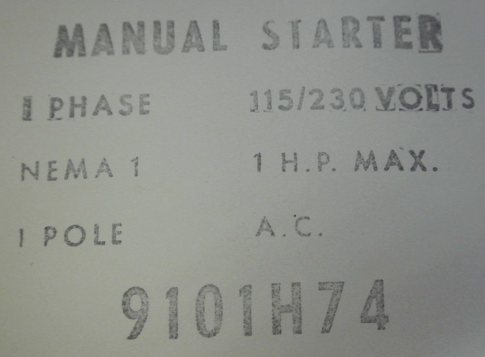 как выглядит CUTLER-HAMMER 9101H74 - MANUAL STARTER 115/230VAC, 1HP, 1-POLE NEW SURPLUS фото