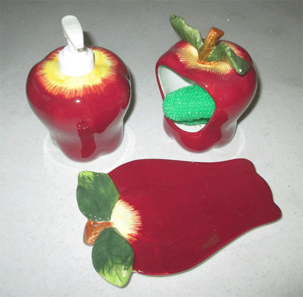Apple Soap Dispenser, Scouring Pad Holder Spoon rest Set