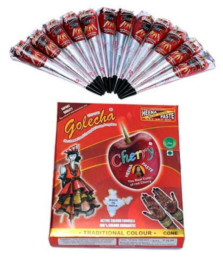 Golecha Cherry Red Color Henna Temporary Tattoo Body Art - 12 Cones