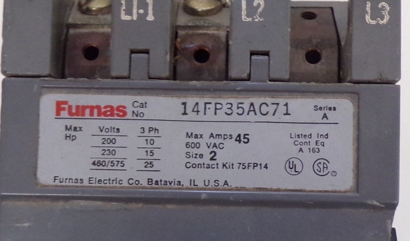 FURNAS SURGE SUPPRESSOR, 14FP35AC71, SERIES A, 45 AMPS, SIZE 2, 600VAC, PHASE 3