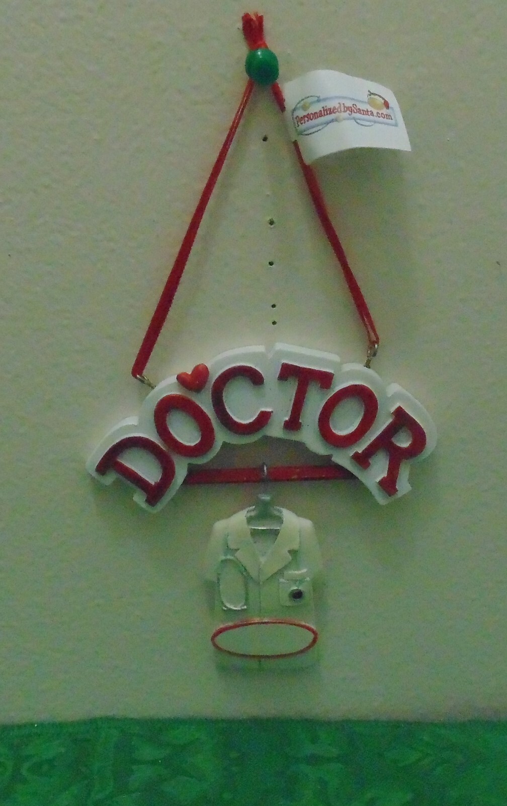 Shape/Theme: Hanging Doctor Coat under a sign that say Doctor