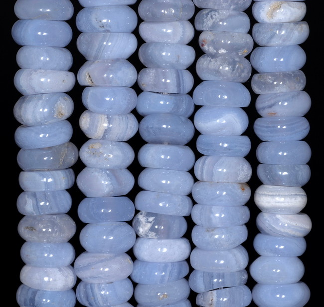 как выглядит 11X4MM CHALCEDONY BLUE LACE AGATE GEMSTONE GRADE AA RONDELLE LOOSE BEADS 16" фото