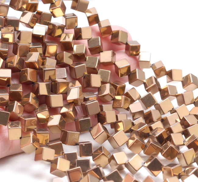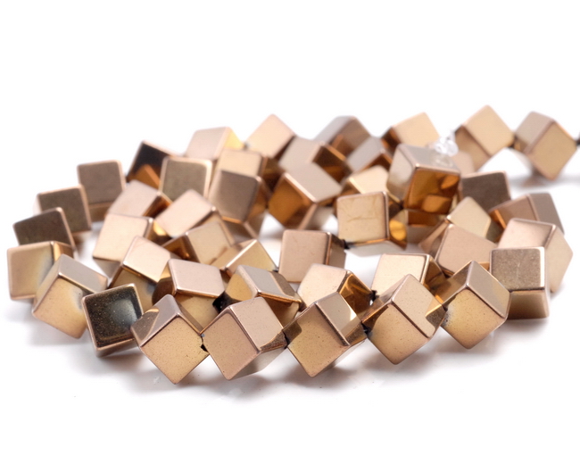 6MM BRONZE HEMATITE GEMSTONE DIAGONAL-DRILL SQUARE CUBE LOOSE BEADS 16