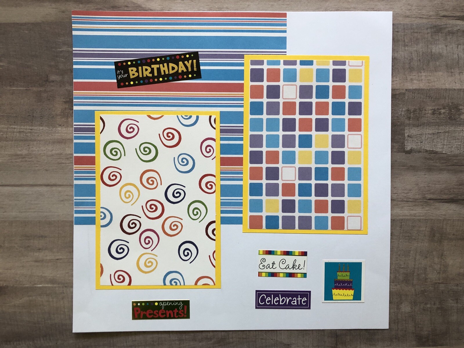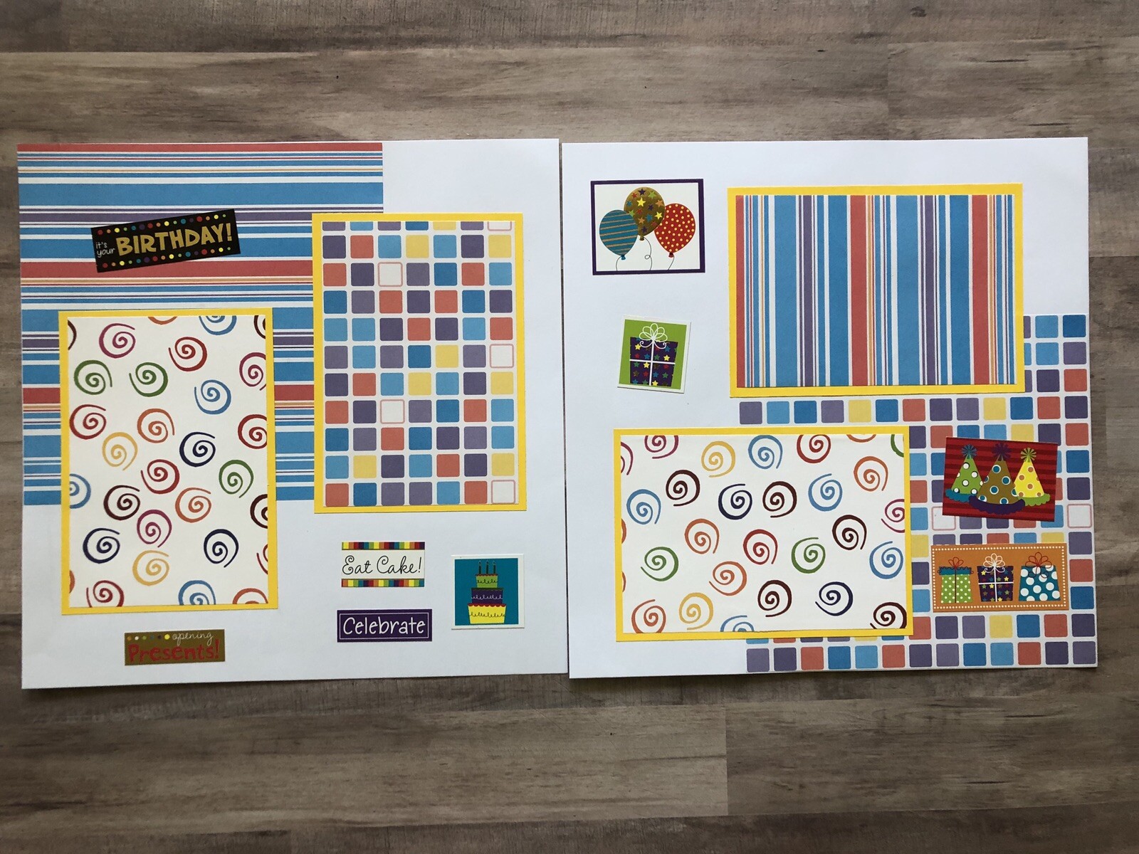 Happy Birthday Scrapbook pages, Ready for 4 by 6 photos, premade, 12 by 12
