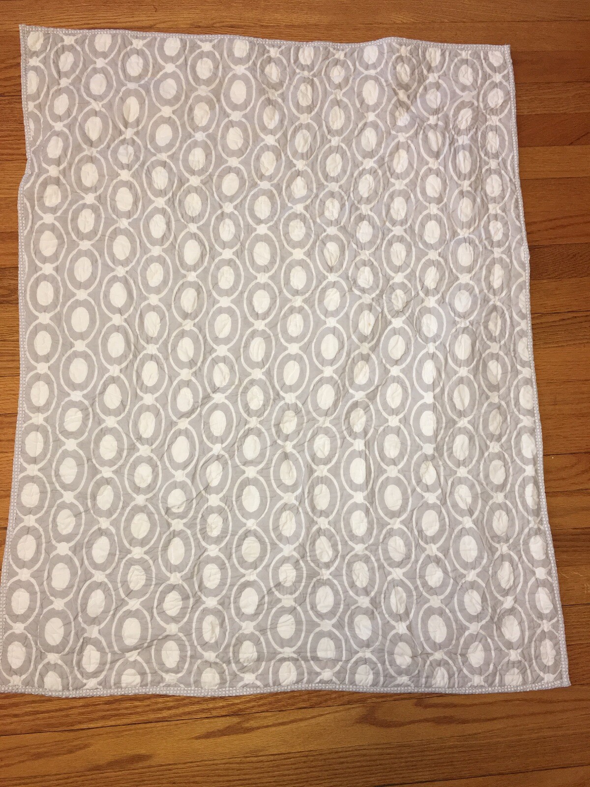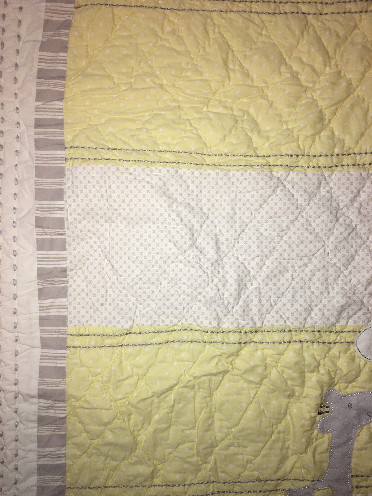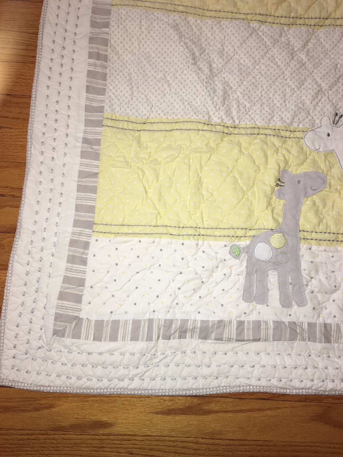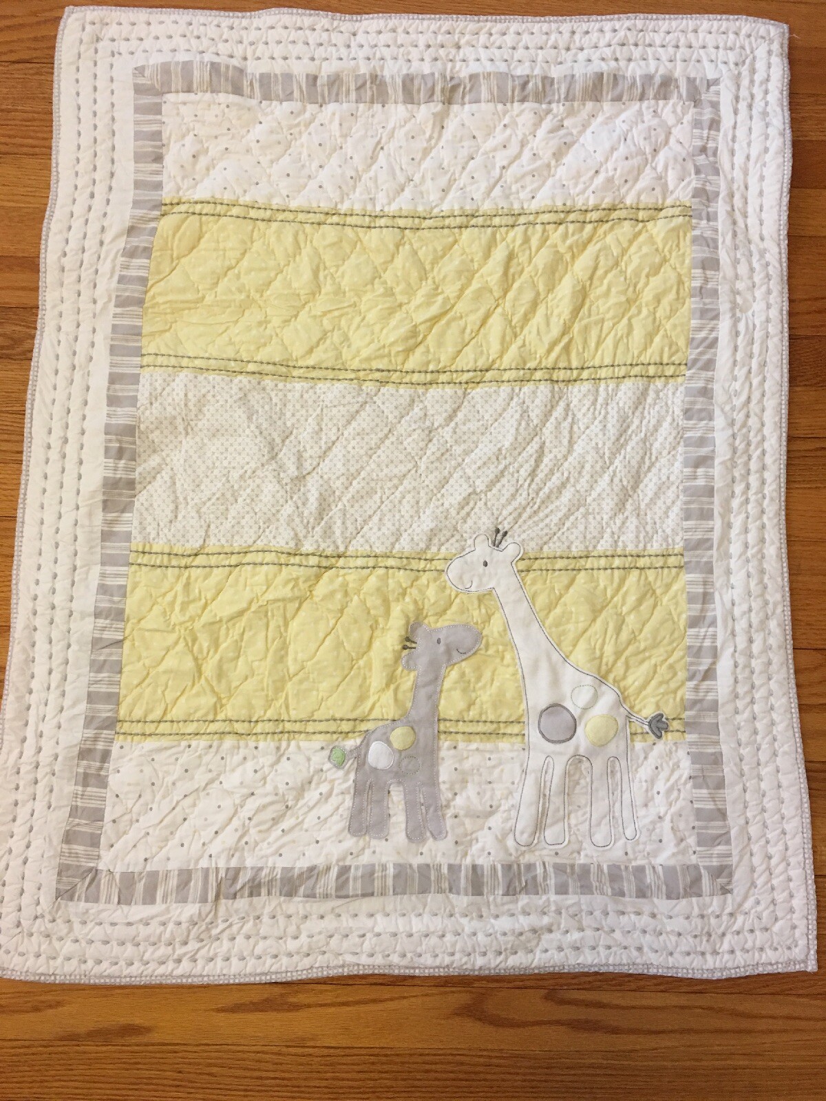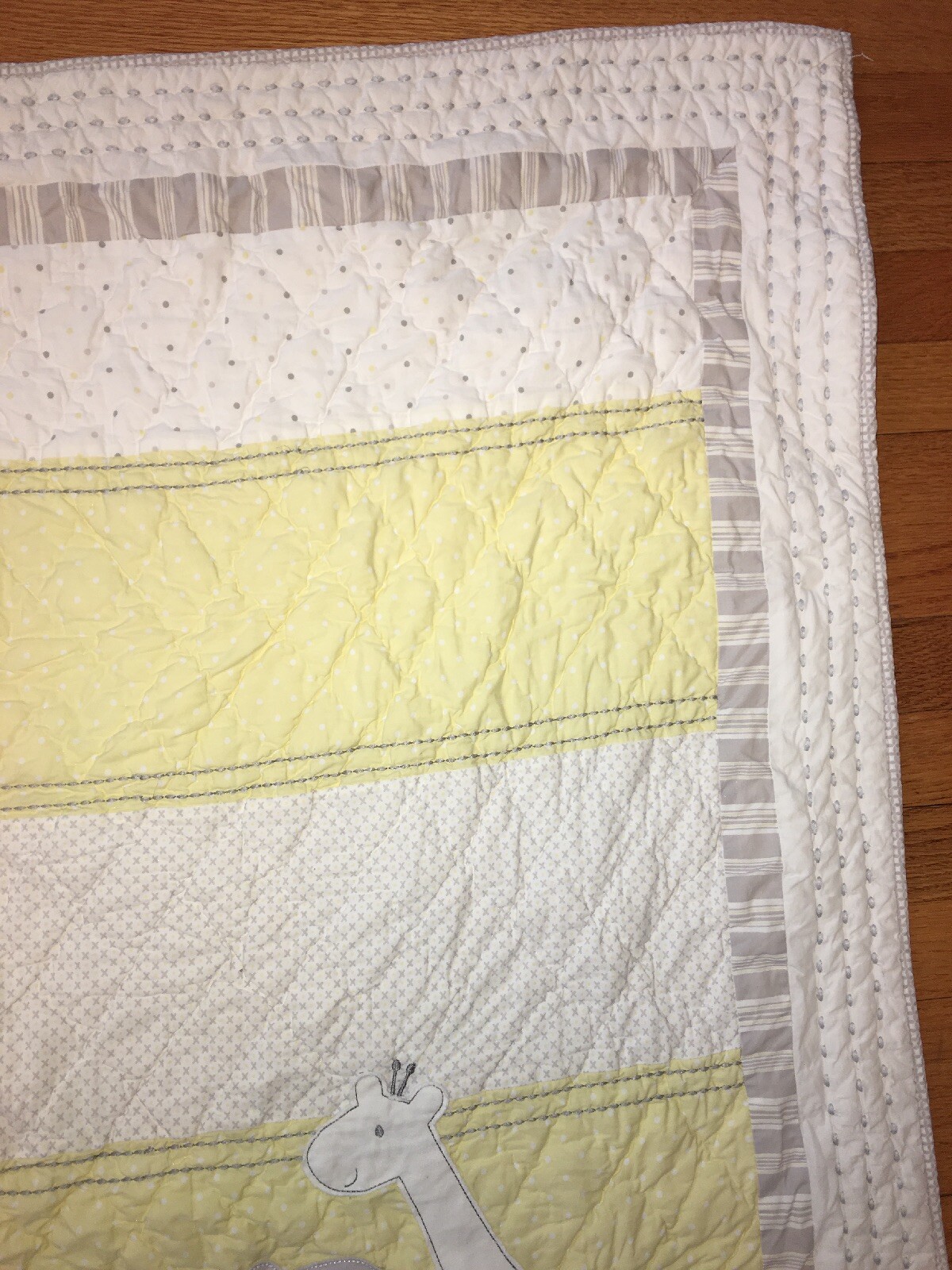 как выглядит POTTERY BARN PALE YELLOW Grey Giraffe NURSERY CRIB QUILT Blanket Stripe фото