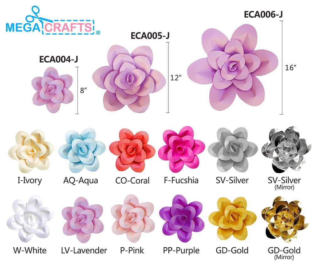 Mega Crafts - 8 Handmade Paper Pedal Flower - White, 1PC