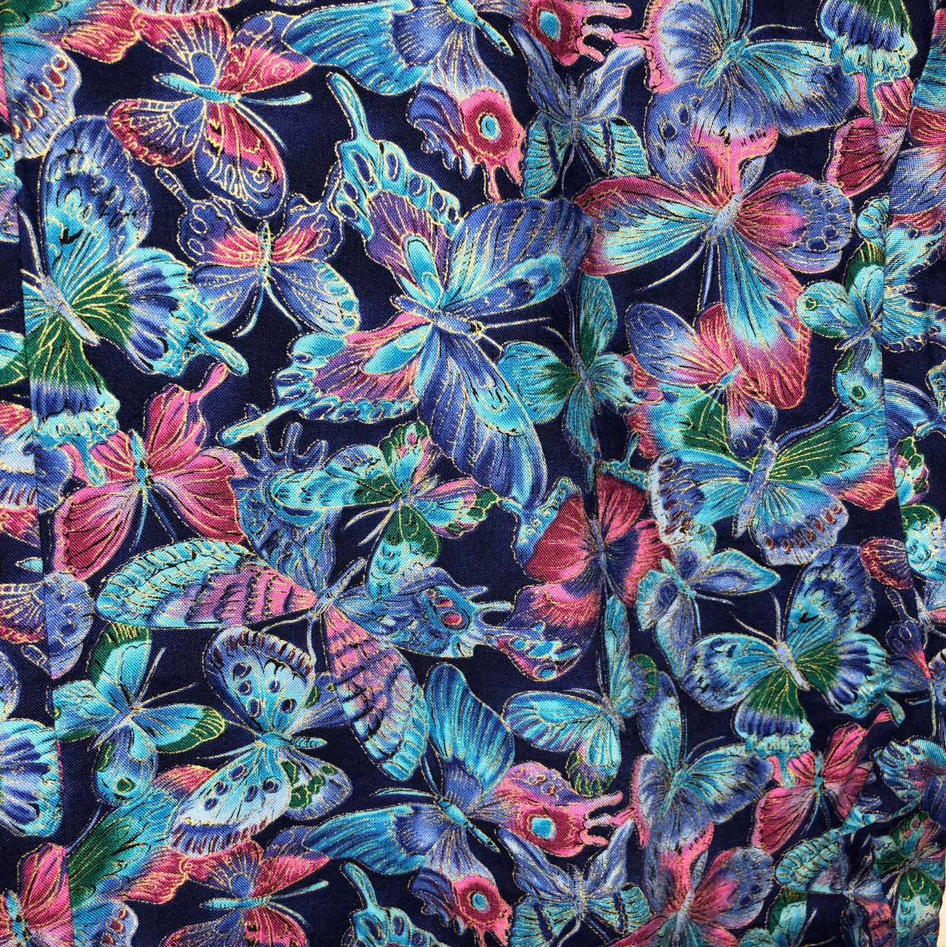 как выглядит NWOT Barco Uniforms Sz Large Blue Pink Butterfly w/ Gold Flecks Scrub Shirt фото