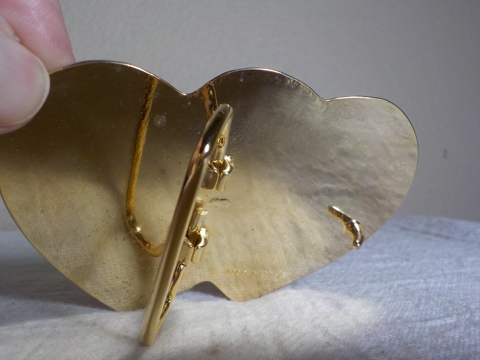 USA DOUBLE HEART GOLDTONE METAL BUCKLE W/ROSE DESIGN 3.75 X 2.5 FITS 1.5 BELT