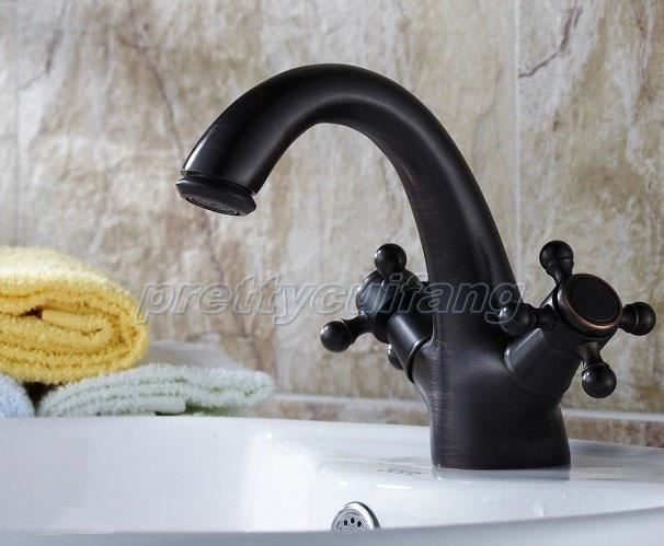 Black Oil Rubbed Brass Dual Handles Bathroom Vessel Sink Faucet Mixer Tap Pnf049