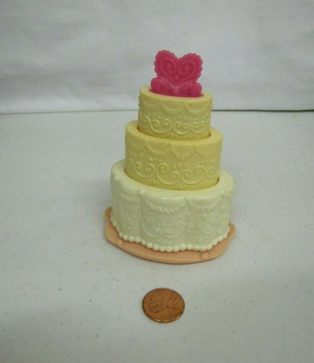 как выглядит Hasbro 2005 Cream Tiered Cake Toy Collapsible With Heart Design Tiers Rare фото