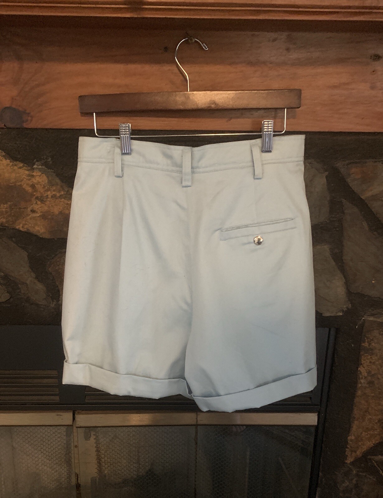 Vintage 80s High Waist Blue Cuffed Shorts Size Large