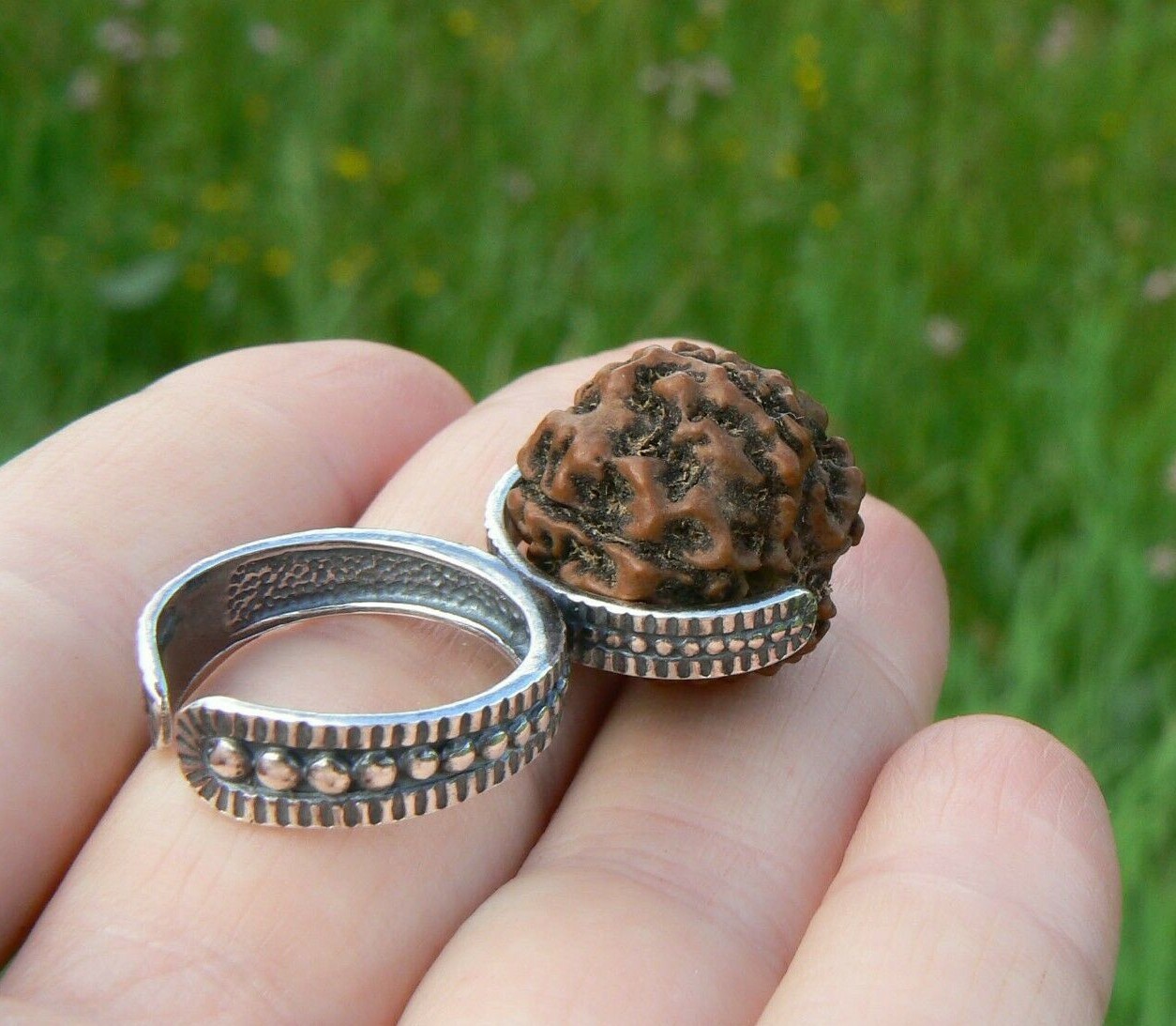 как выглядит Natural 5 Mukhi Rudraksha Seed Ring 925 Silver Hindu Shiva Yoga Jewelry HANDMADE фото