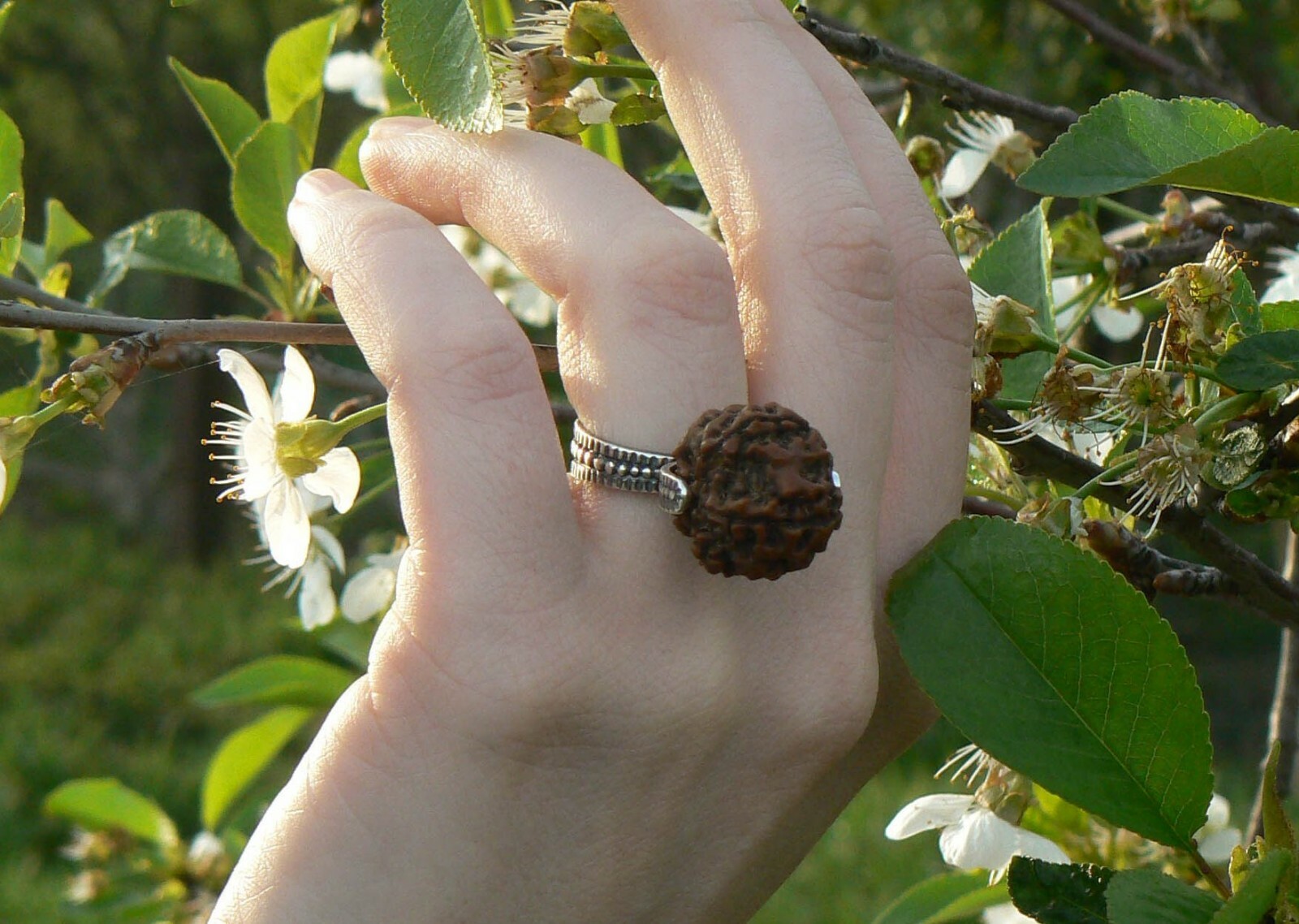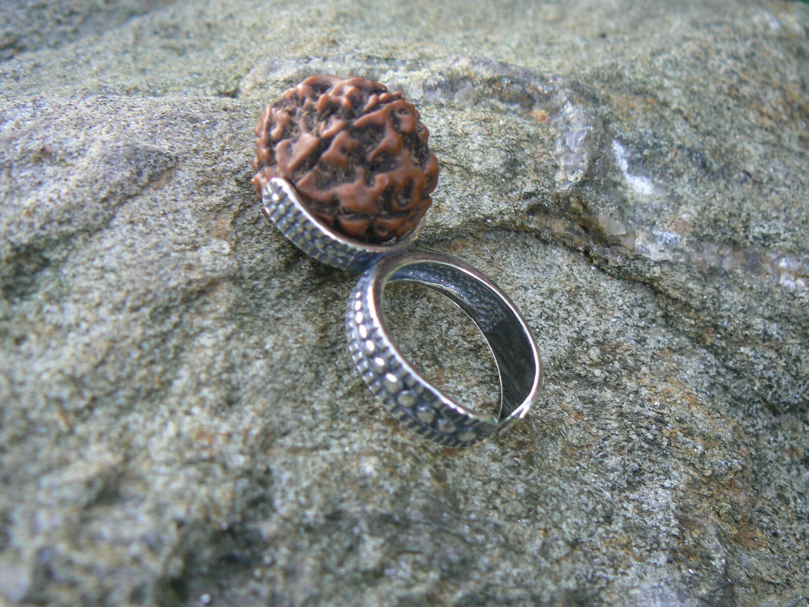 Natural 5 Mukhi Rudraksha Seed Ring 925 Silver Hindu Shiva Yoga Jewelry HANDMADE