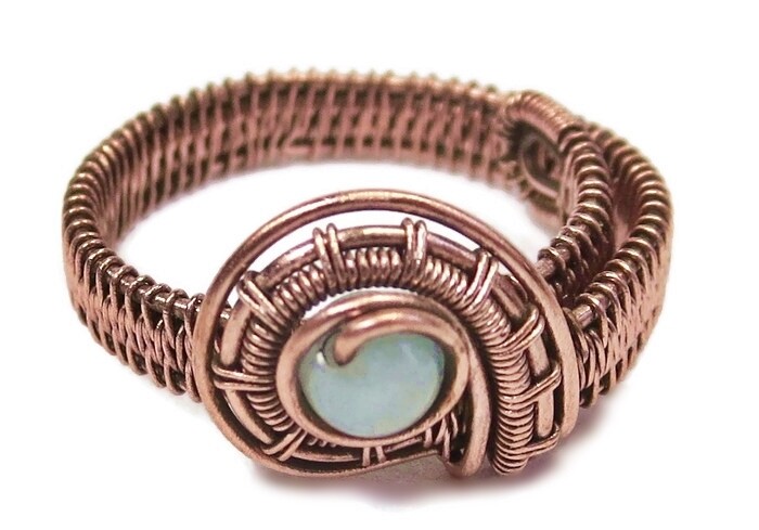 как выглядит Aquamarine Adjustable Ring, Woven in Copper Wire фото