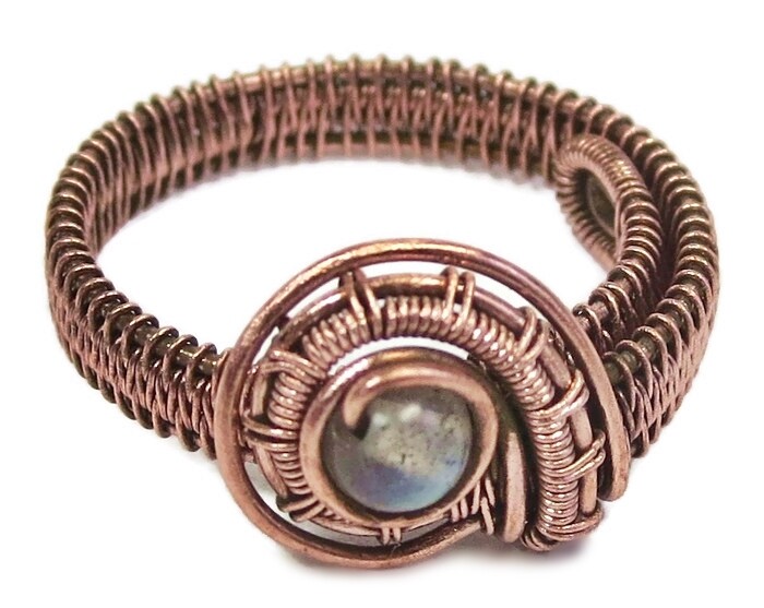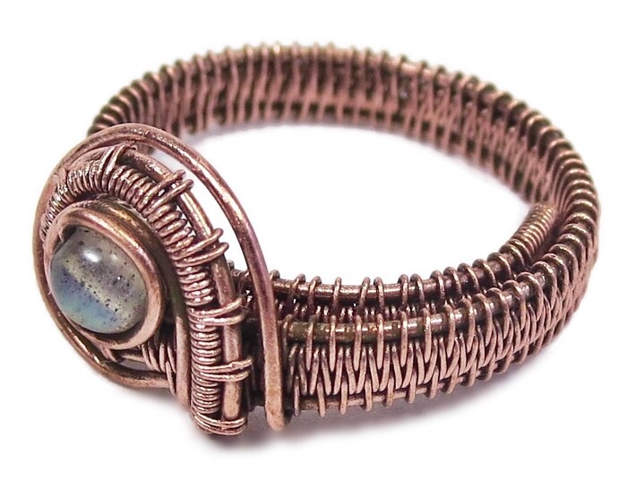 Labradorite Adjustable Ring, Woven in Copper Wire