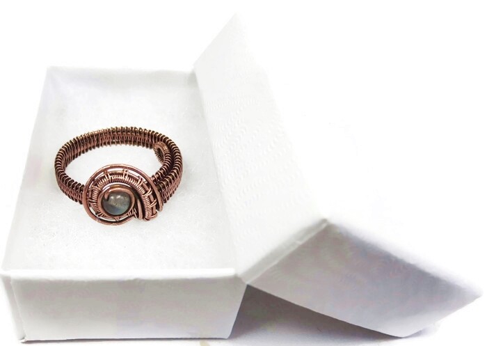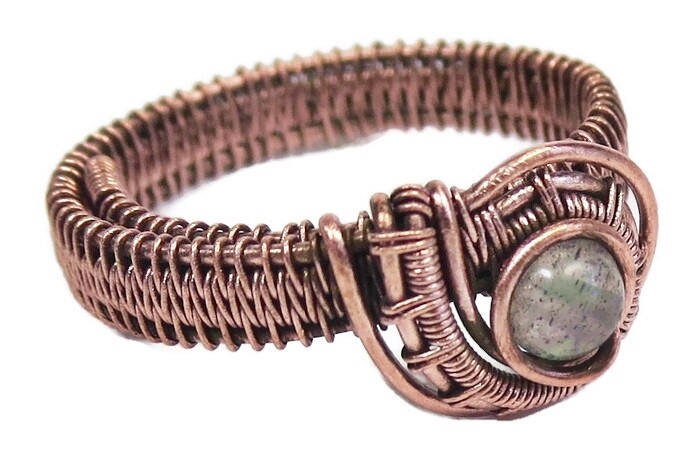 как выглядит Labradorite Adjustable Ring, Woven in Copper Wire фото