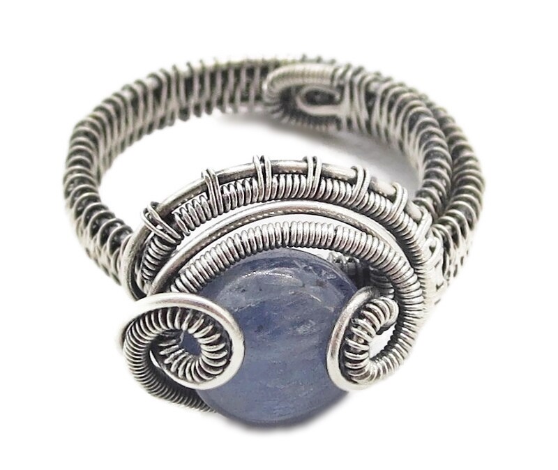 как выглядит Adjustable Blue Kyanite Wire-Wrapped Ring in Sterling Silver фото
