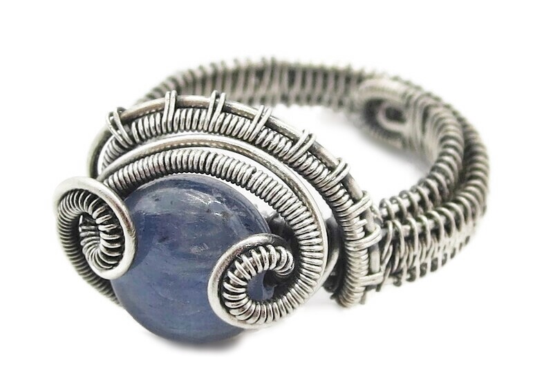 Adjustable Blue Kyanite Wire-Wrapped Ring in Sterling Silver