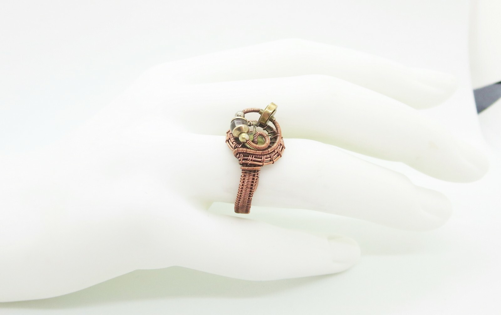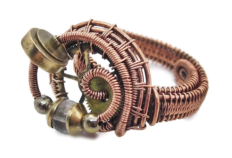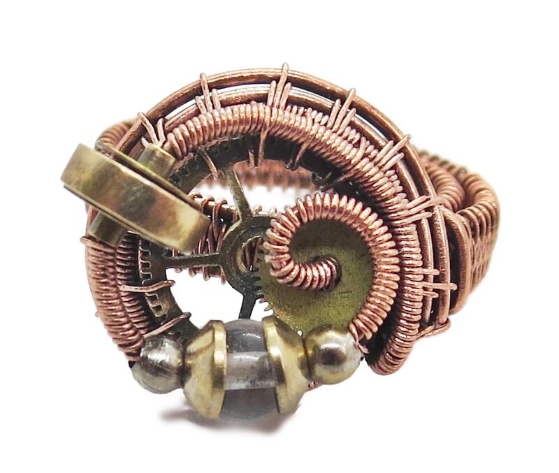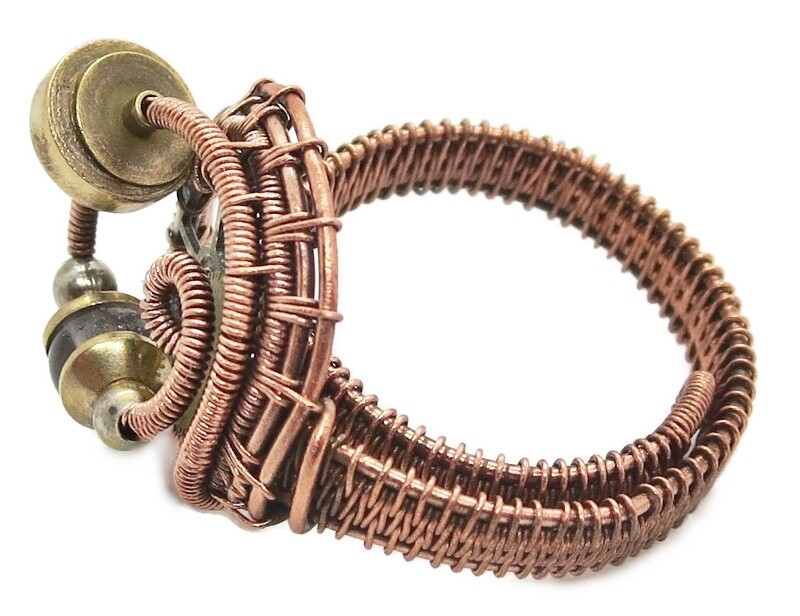 как выглядит Adjustable Quartz Steampunk Ring in Copper and Brass фото