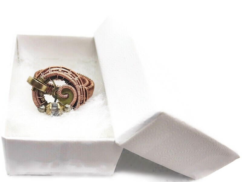Adjustable Quartz Steampunk Ring in Copper and Brass