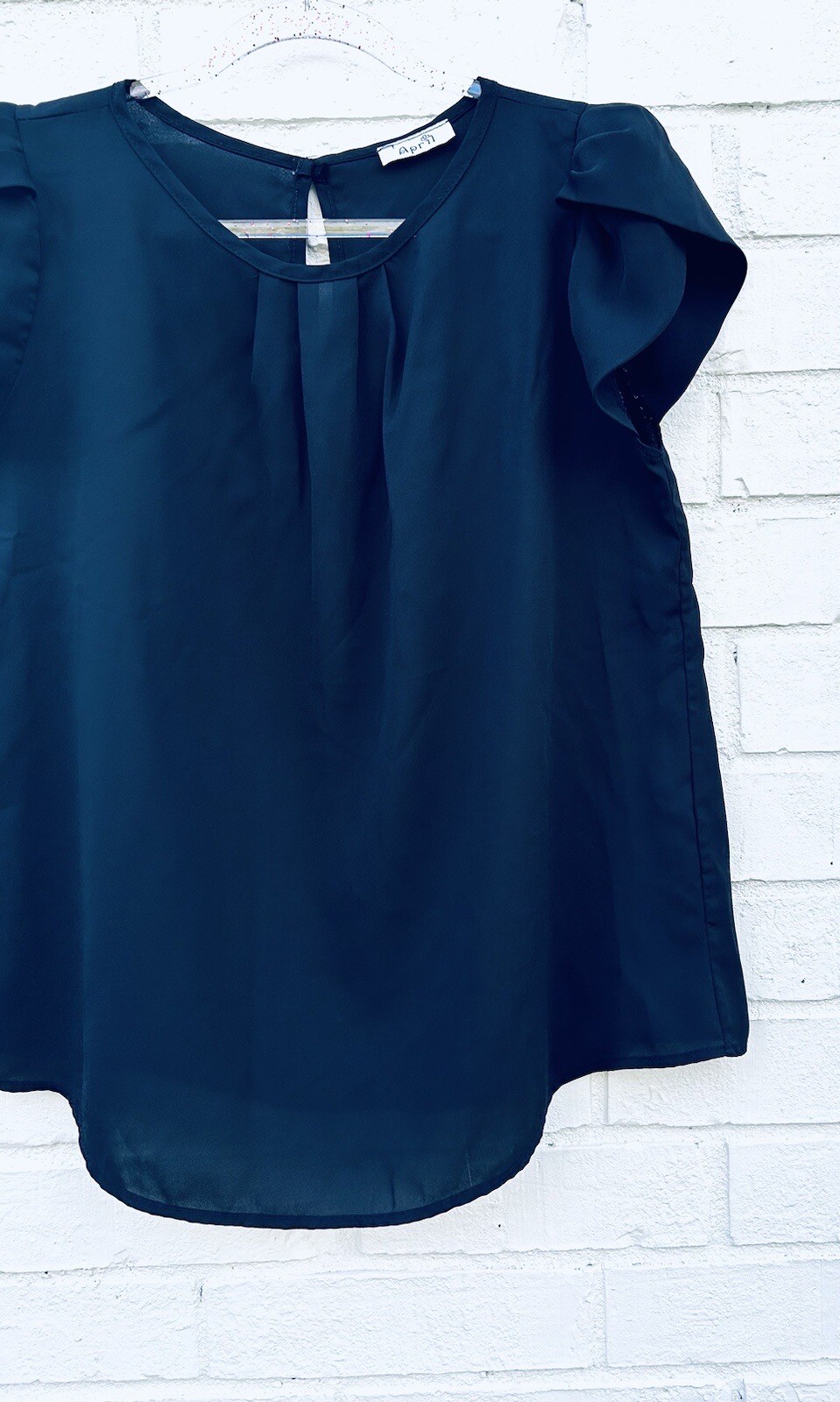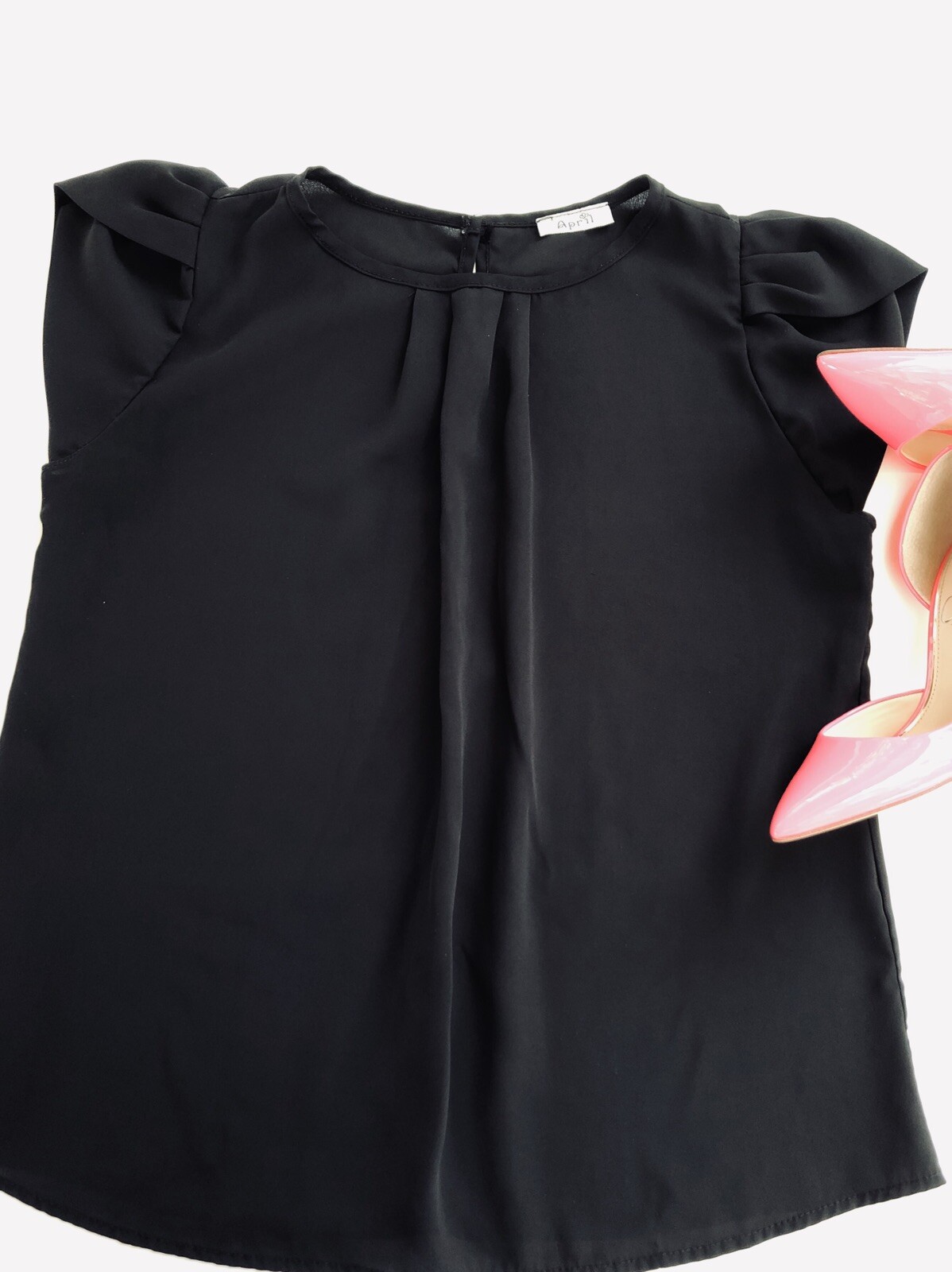 VINTAGE CHIC 90s Blouse Top Secretary Pleated Cap Shoulders Black April Small M
