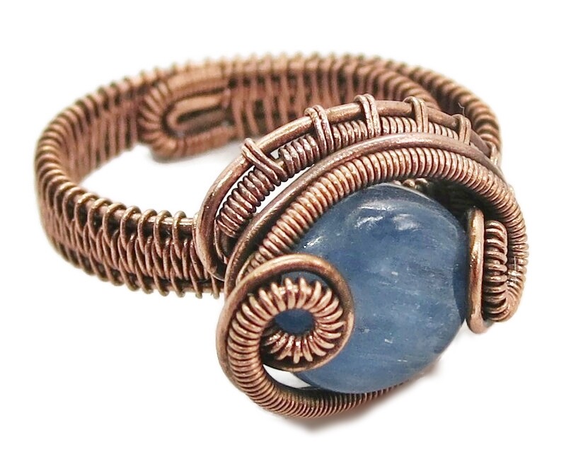 как выглядит Adjustable Blue Kyanite Wire-Wrapped Ring in Copper фото