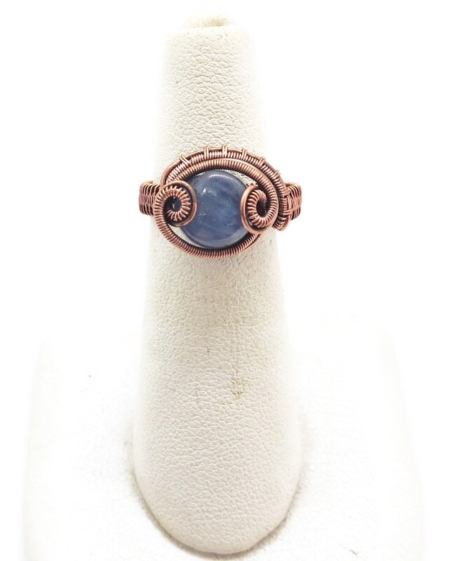 Adjustable Blue Kyanite Wire-Wrapped Ring in Copper