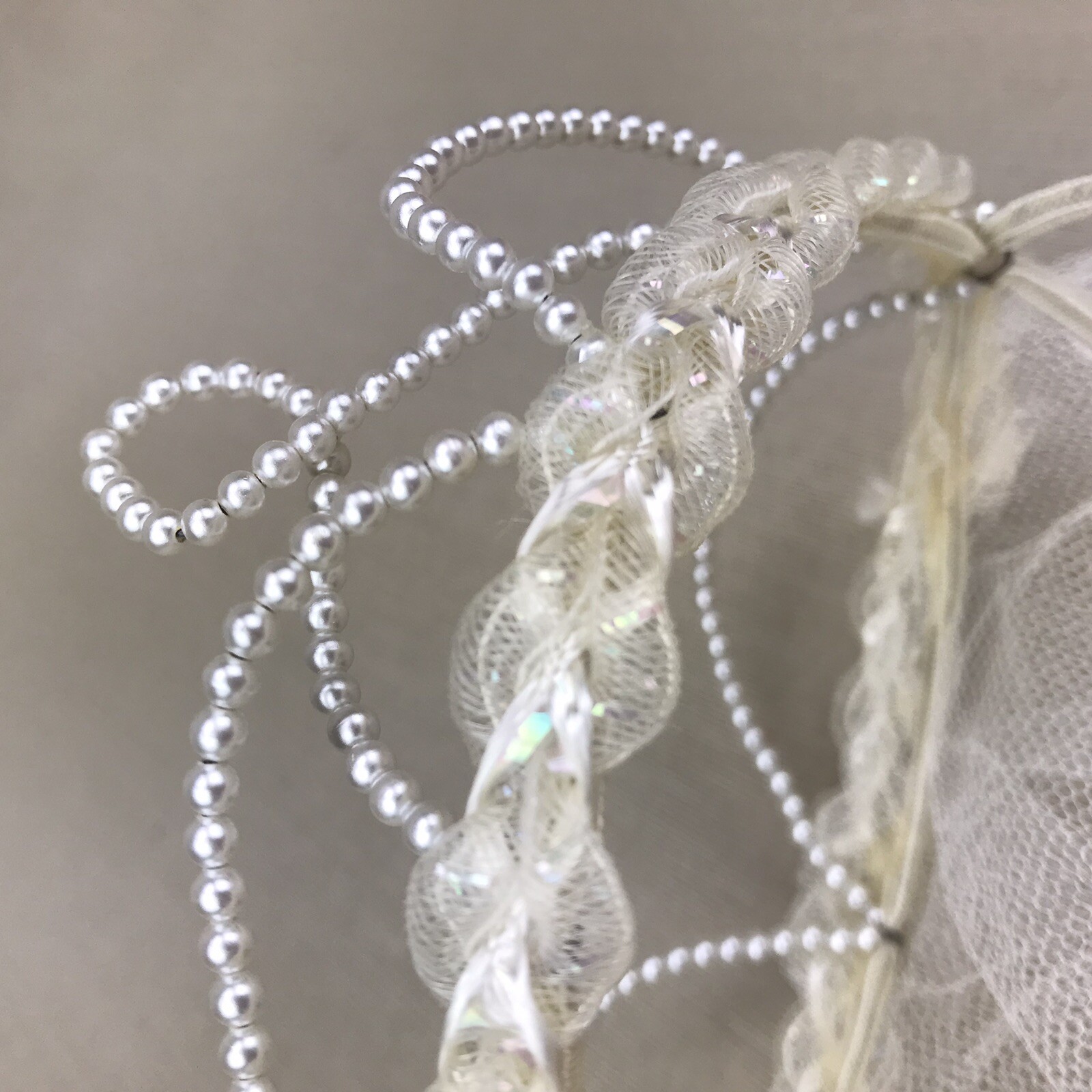 Lace and Tulle Vintage First Communion Veil headpiece w Beaded Tiara Catholic