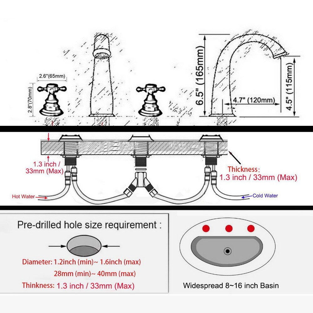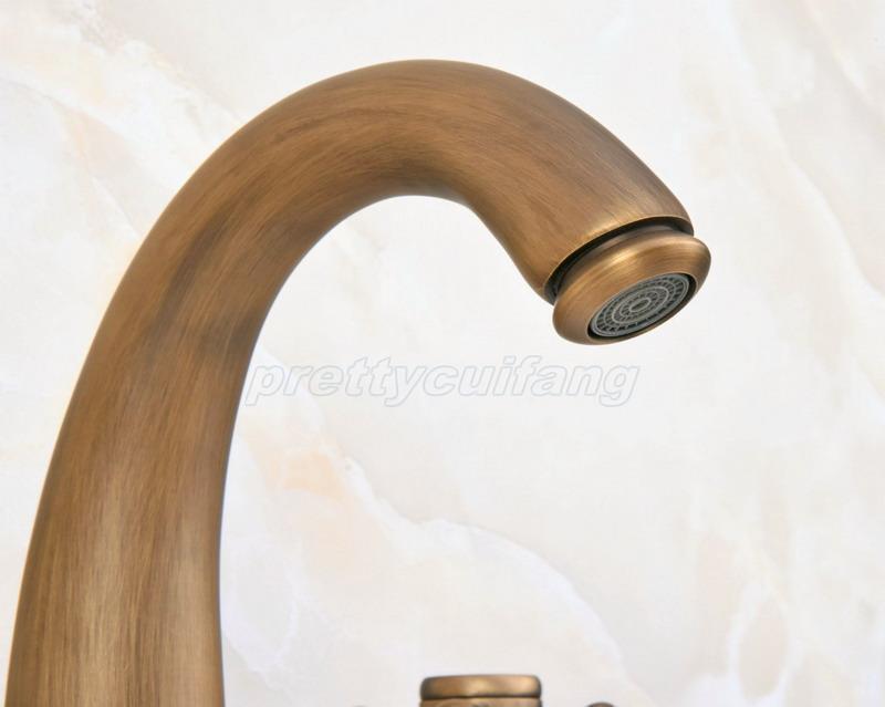 Antique Brass Bathroom Basin Faucet 3 Holes Widespread Sink Bathtub Mixer Tap