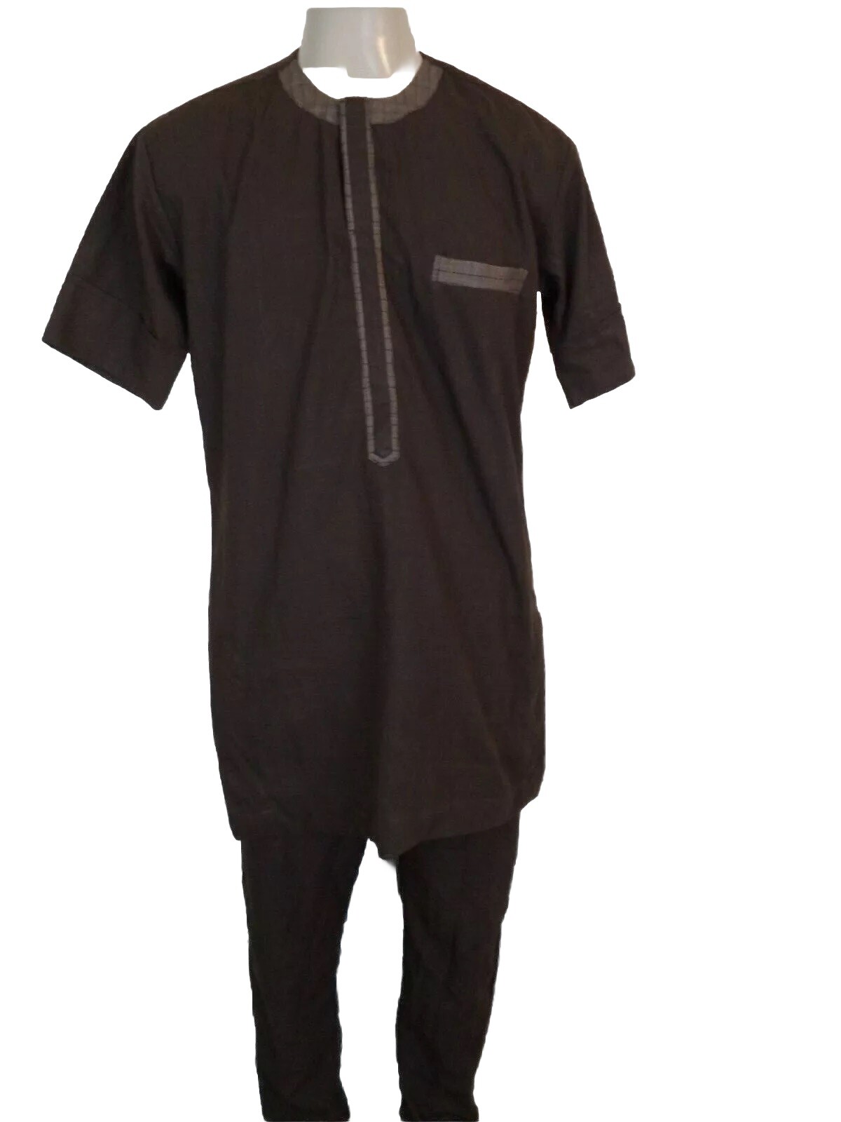 как выглядит Mens Brown Handmade African Custom Kaftan Set. One Size. Short Sleeve фото