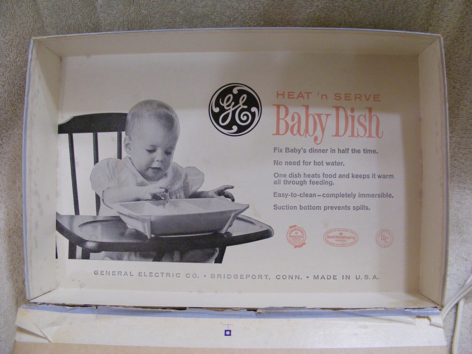 GE HEAT 'n SERVE BABY DISH in ORIGINAL BLUE BOX