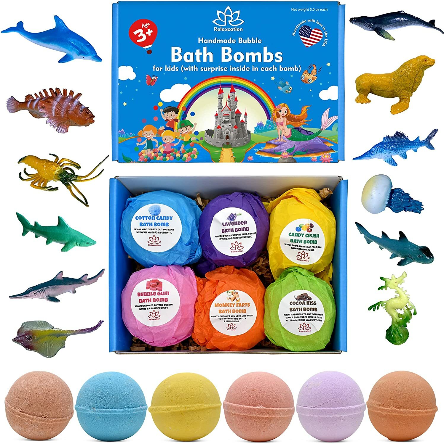 2 PACK of 6 Bath Bombs Gift Set for Kids and Teens with Sea Animals Toys inside