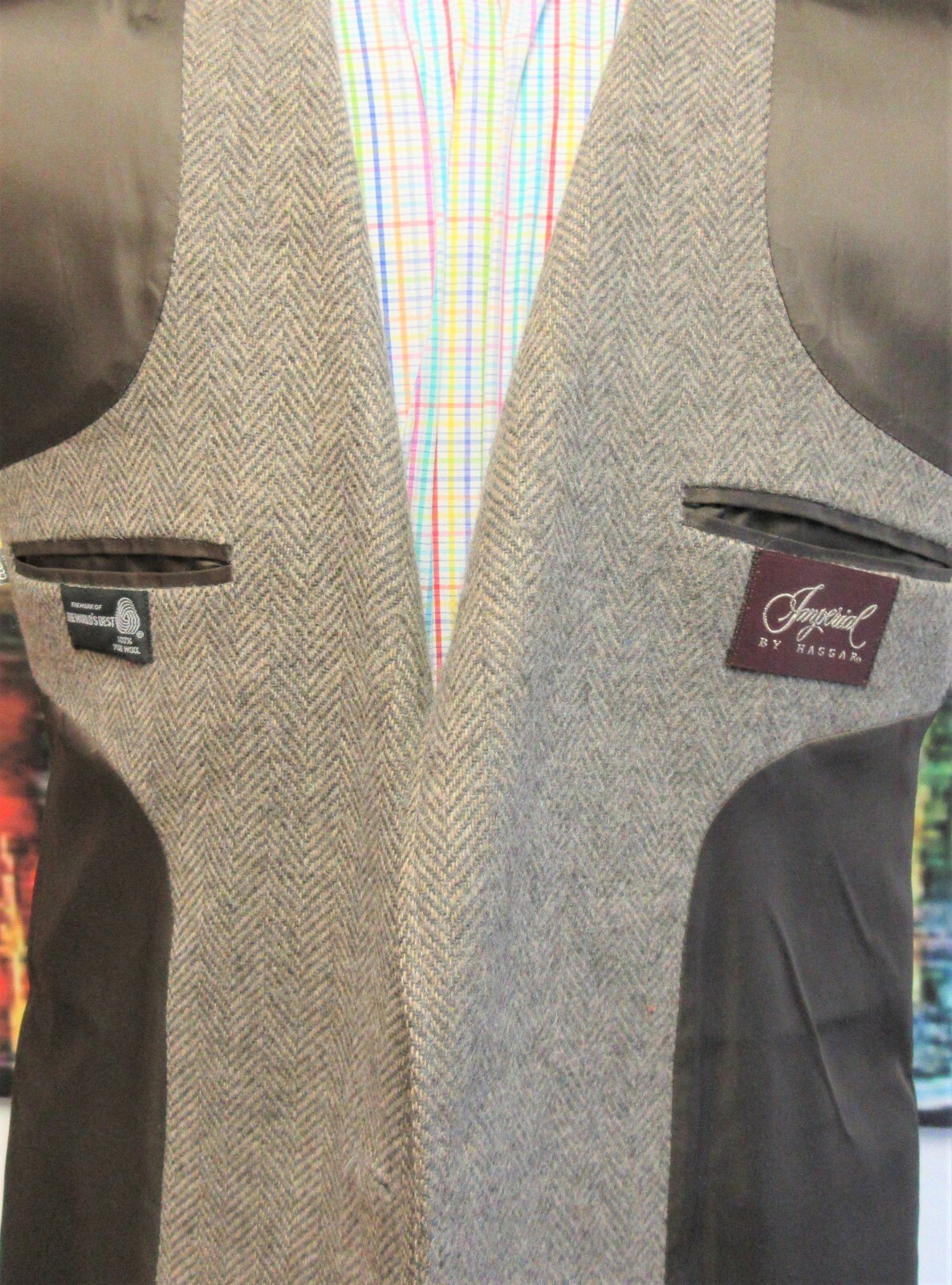 как выглядит 42 R- VTG Mens 100 WOOL HAGGAR SPORT COAT KHAKI TAUPE HERRINGBONE фото