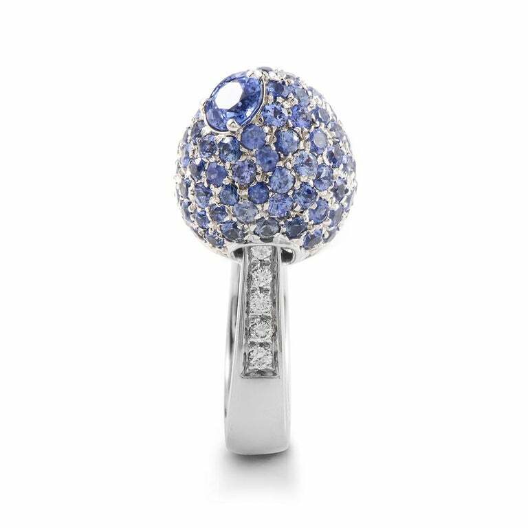 как выглядит Attractive Blue Round Cut Sapphire With White Shiny CZ 5.71TCW Dome Style Ring фото