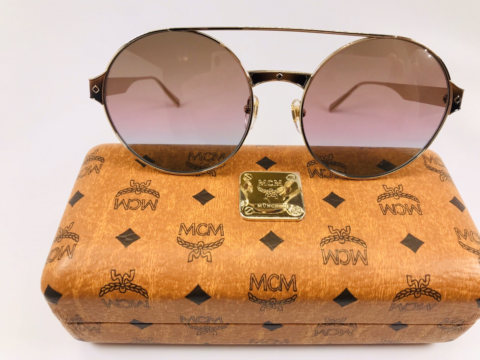 New MCM 124S 728 Gold Brown Rose Azure Sunglasses 58mm with Case