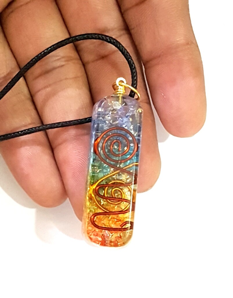 • 7 Chakra EMF Protection Reiki Energy Healing Orgone Pendant With Cord