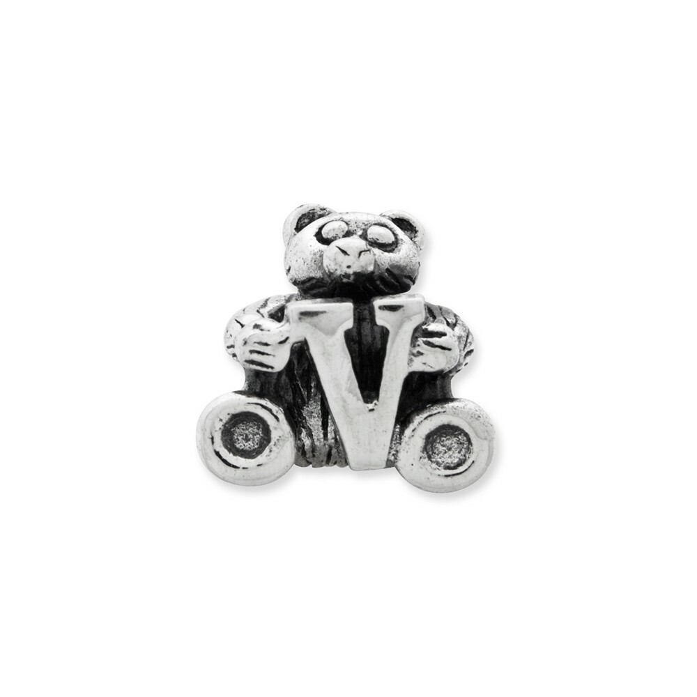 как выглядит Letter V Teddy Bear Kids Bead .925 Sterling Silver Antiqued Reflection Beads фото