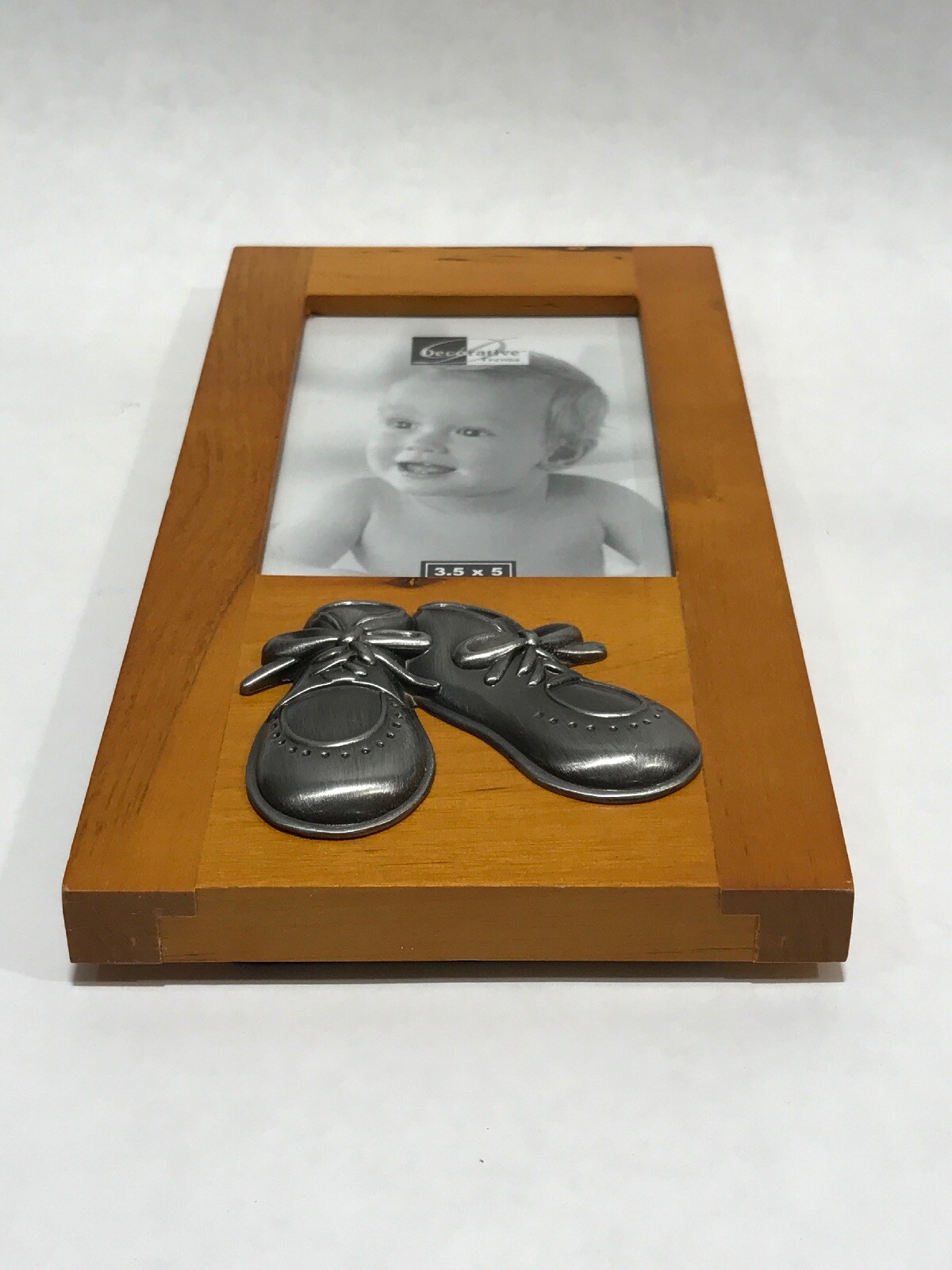 Wooden Picture Frame For Baby Silver Pair of Shoes 3.5 x 5 Picture opening