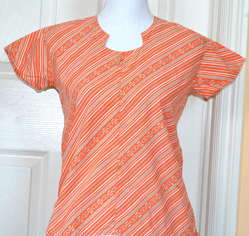 как выглядит Orange White Beige Color Striped Cotton Tunic Top Kurti from India фото