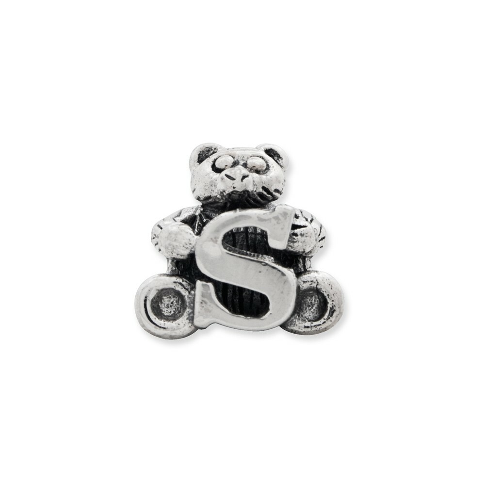 Letter S Teddy Bear Kids Bead .925 Sterling Silver Antiqued Reflection Beads